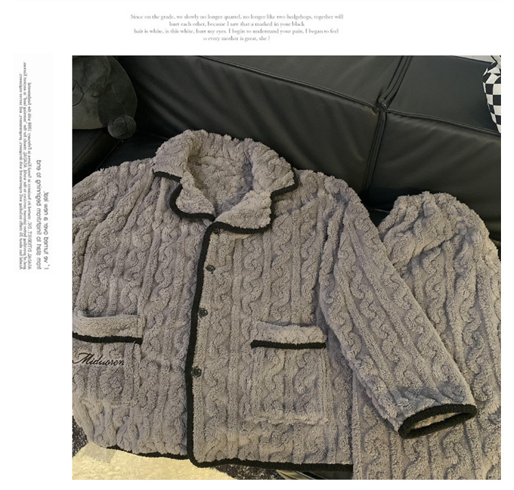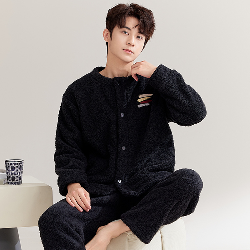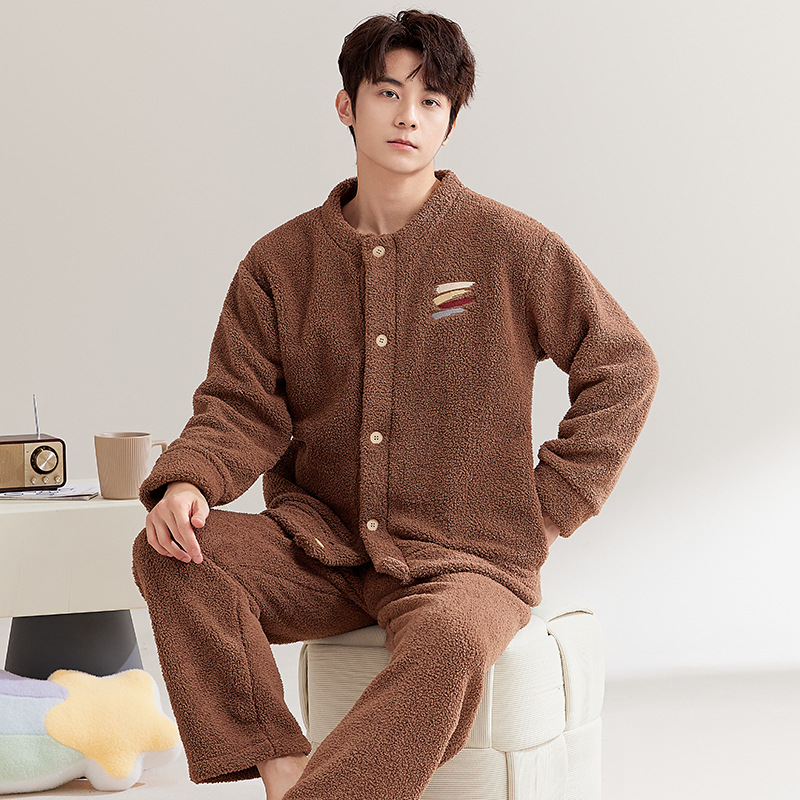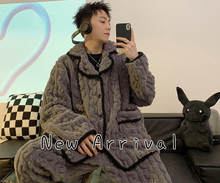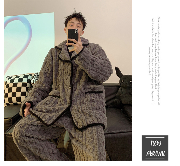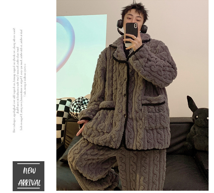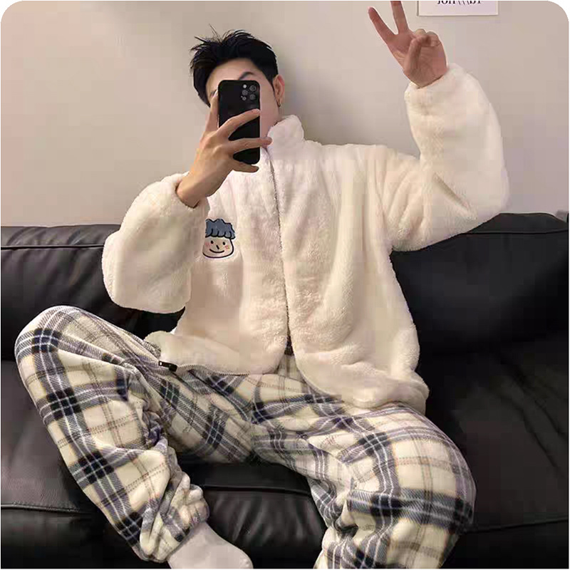 남성용 잠옷 가을 겨울 두꺼운 코랄 벨벳 플러스 벨벳 청소년용 플란넬 남성 홈웨어 세트스토어 가기