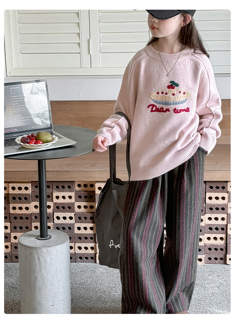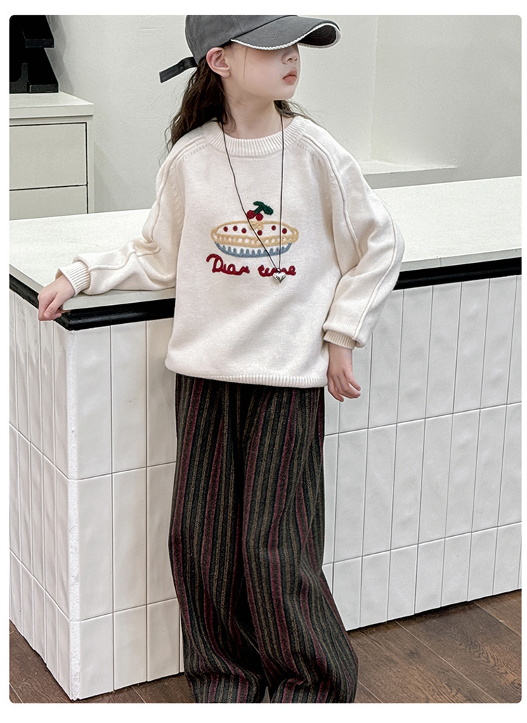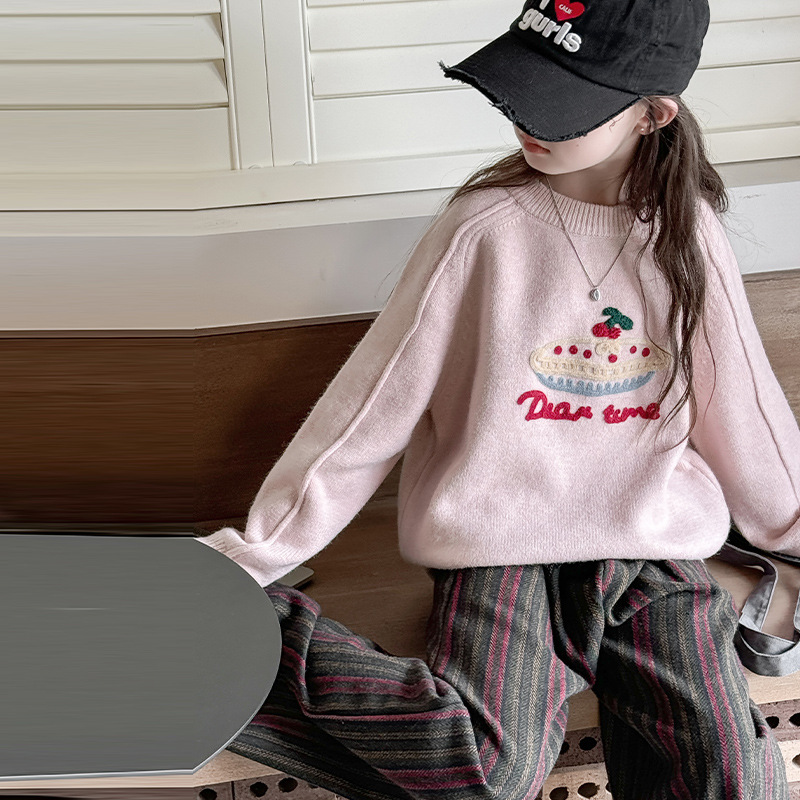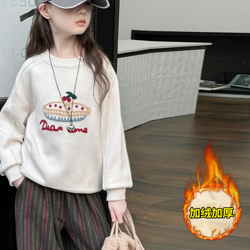 소녀들의 가을과 겨울 2024 새로운 어린이 겨울 기모 두꺼운 니트 탑 소녀들의 겨울베이스 셔츠스토어 가기
