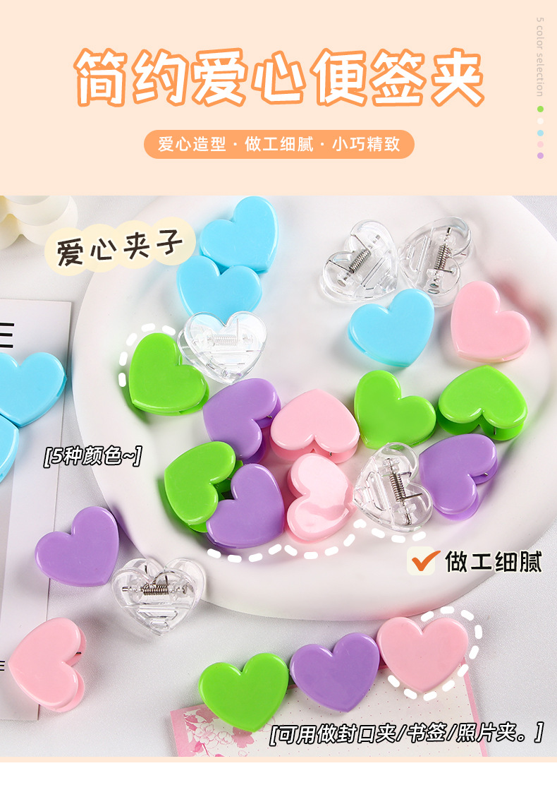 투명 간단한 사랑 작은 클립 플라스틱 테스트 종이 책 폴더 창조적 인 장식 사진 클립 노트 클립 도매