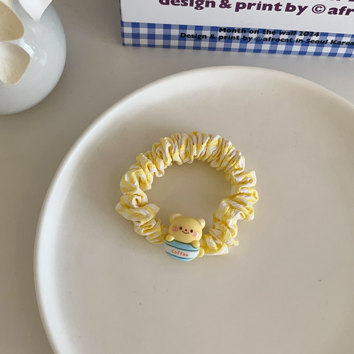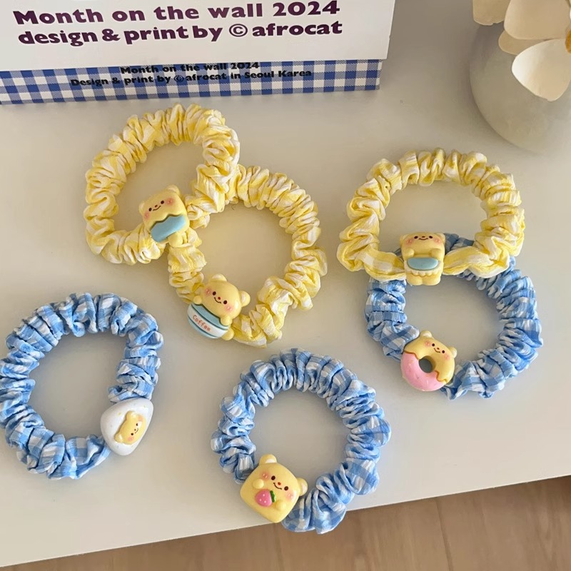 귀여운 우유 노란 곰 대장 머리 반지 소녀 심장 달콤한 바람 머리 밧줄 높은 탄성 포니 테일 만화 고무 밴드 헤어 액세서리스토어 가기