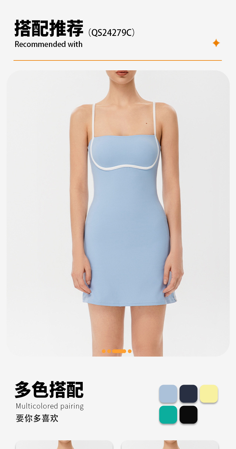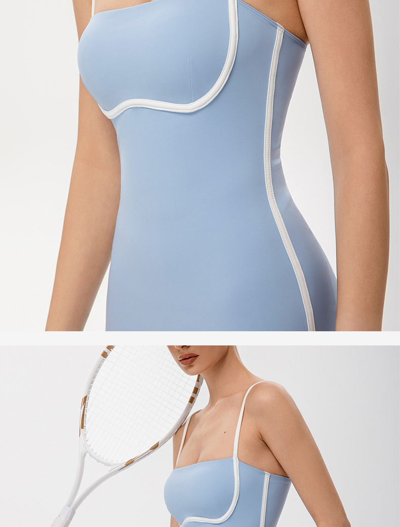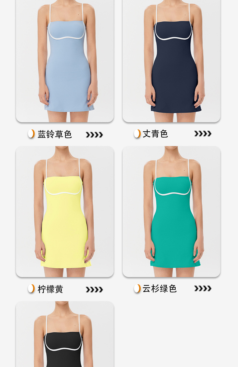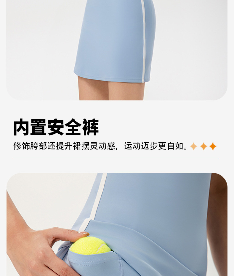 국경을 넘나드는 섹시한 서스펜더 요가 테니스 스커트, 가볍고 통기성이 뛰어난 야외 골프 스포츠 노출 방지 드레스