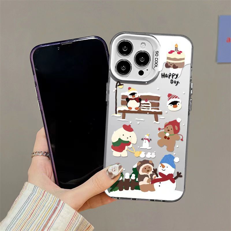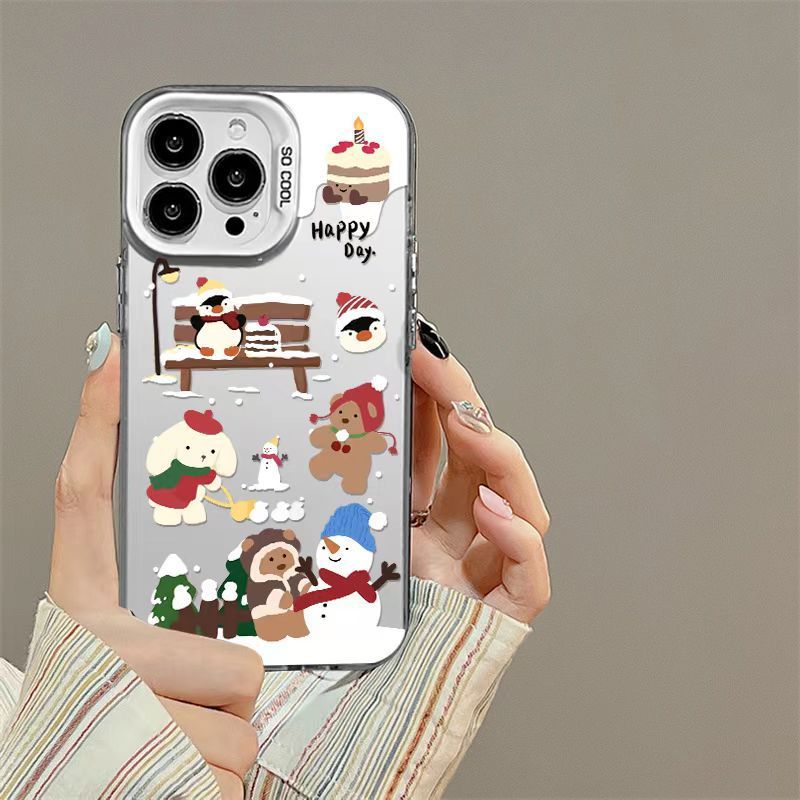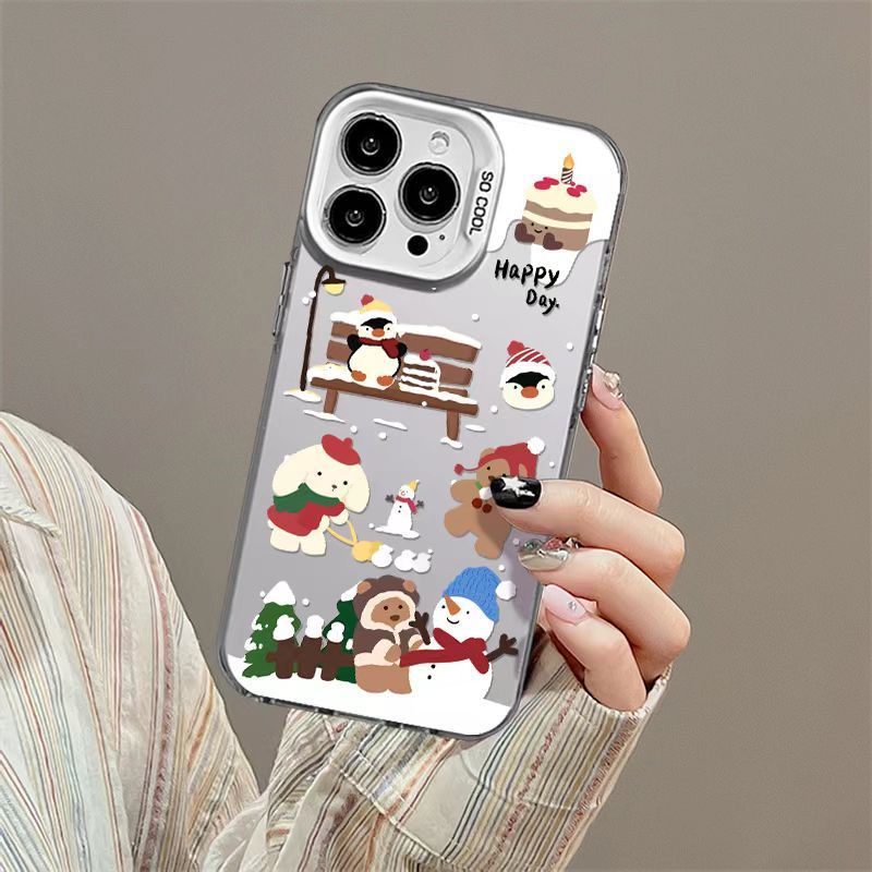 适用苹果16pro圣诞可爱椒熊14/13高级感12彩银手机壳防摔硬磨砂스토어 가기