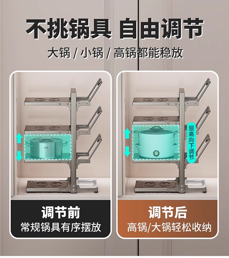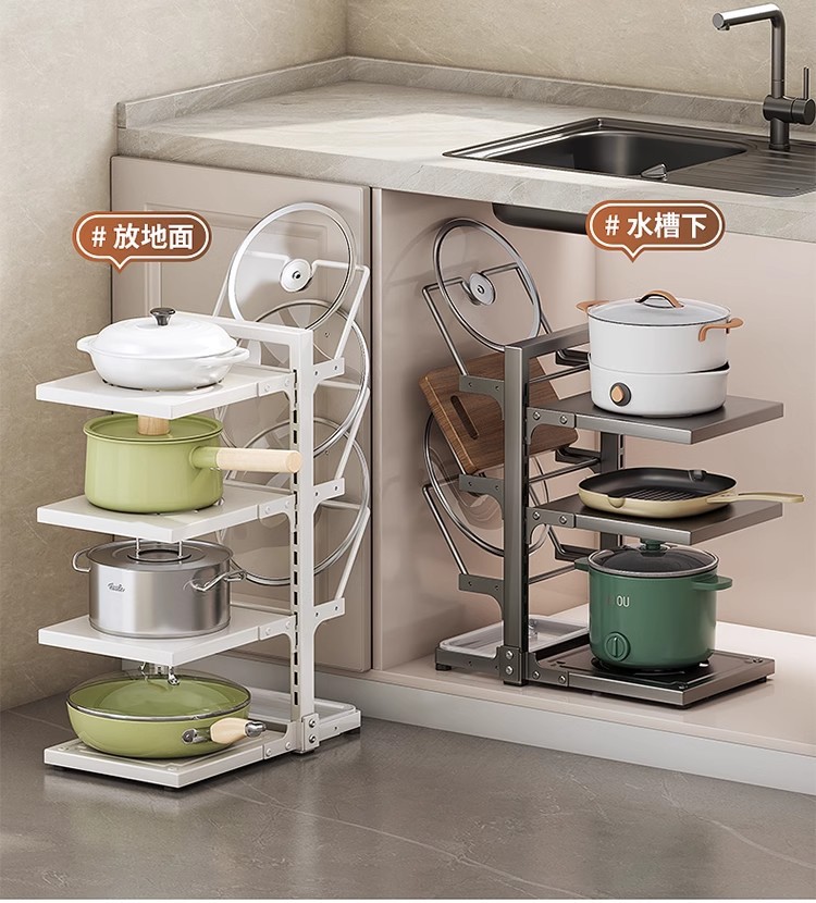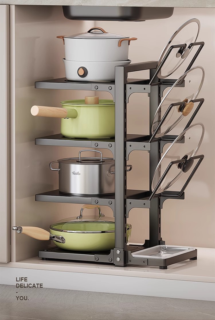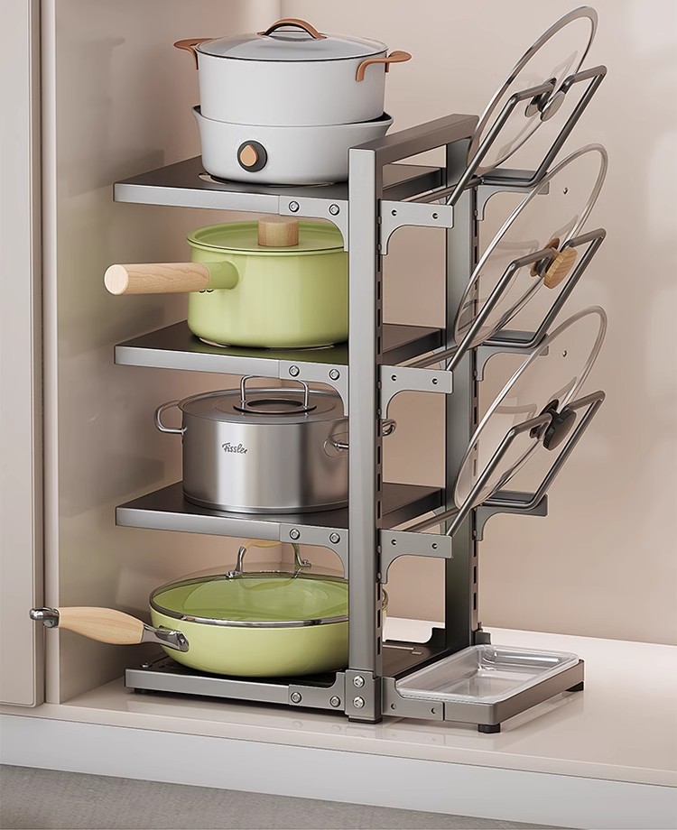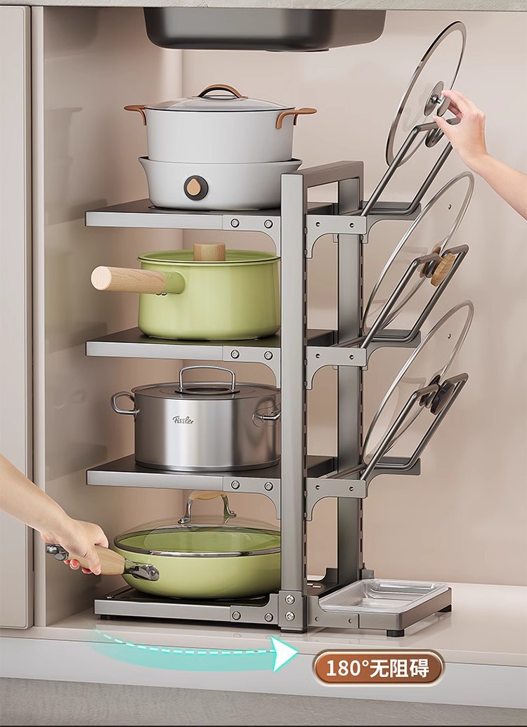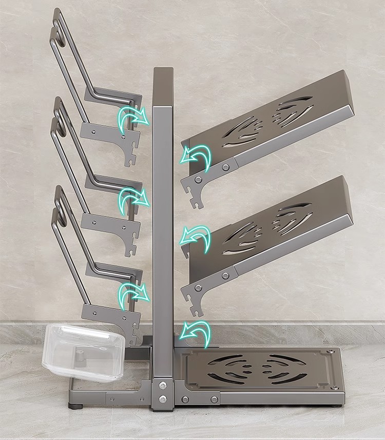 냄비 스토리지 랙 주방 스토리지 랙 멀티 레이어 팟 랙 다기능 하부 싱크 캐비닛 카운터 탑 레이어 팟 커버 랙