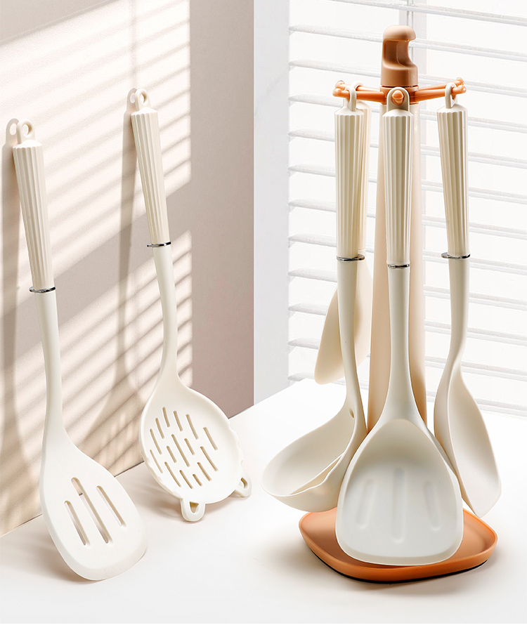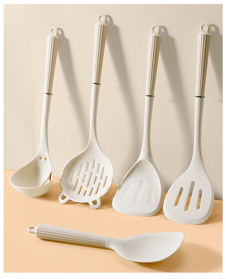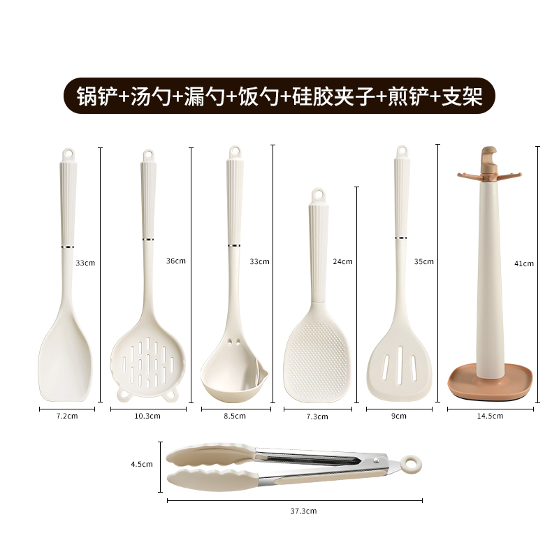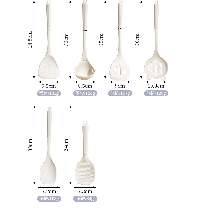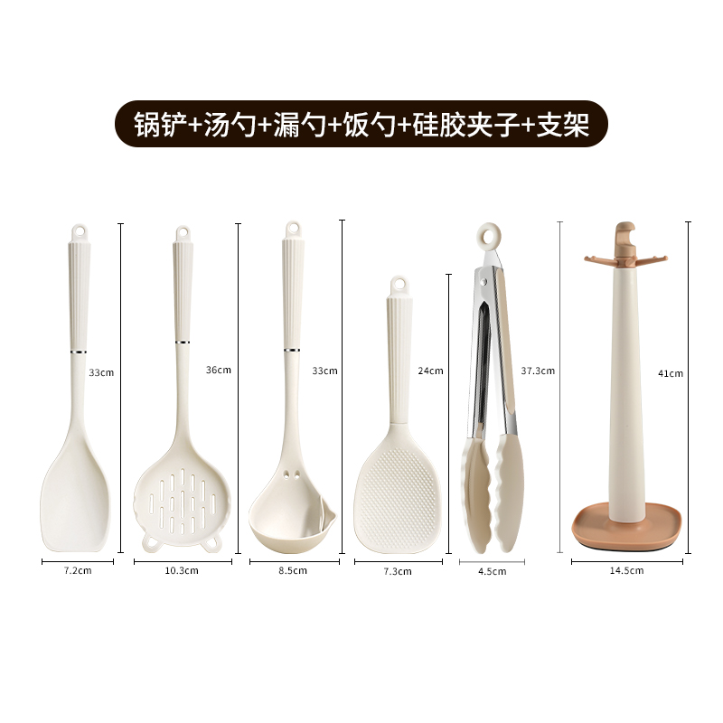 • 7종 세트 (다기능 주걱 + 수프 스푼 + 소쿠리 + 밥 스푼 + 튀김 주걱 + 실리콘 클립 + 스탠드)