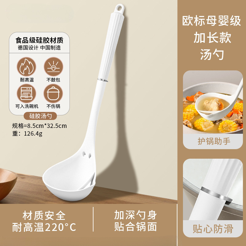 실리콘 수프 스푼 대형 긴 손잡이 수프 스푼 가정용 기름 분리 스푼 거름망 스푼 화염 방지 주걱 스푼 세트