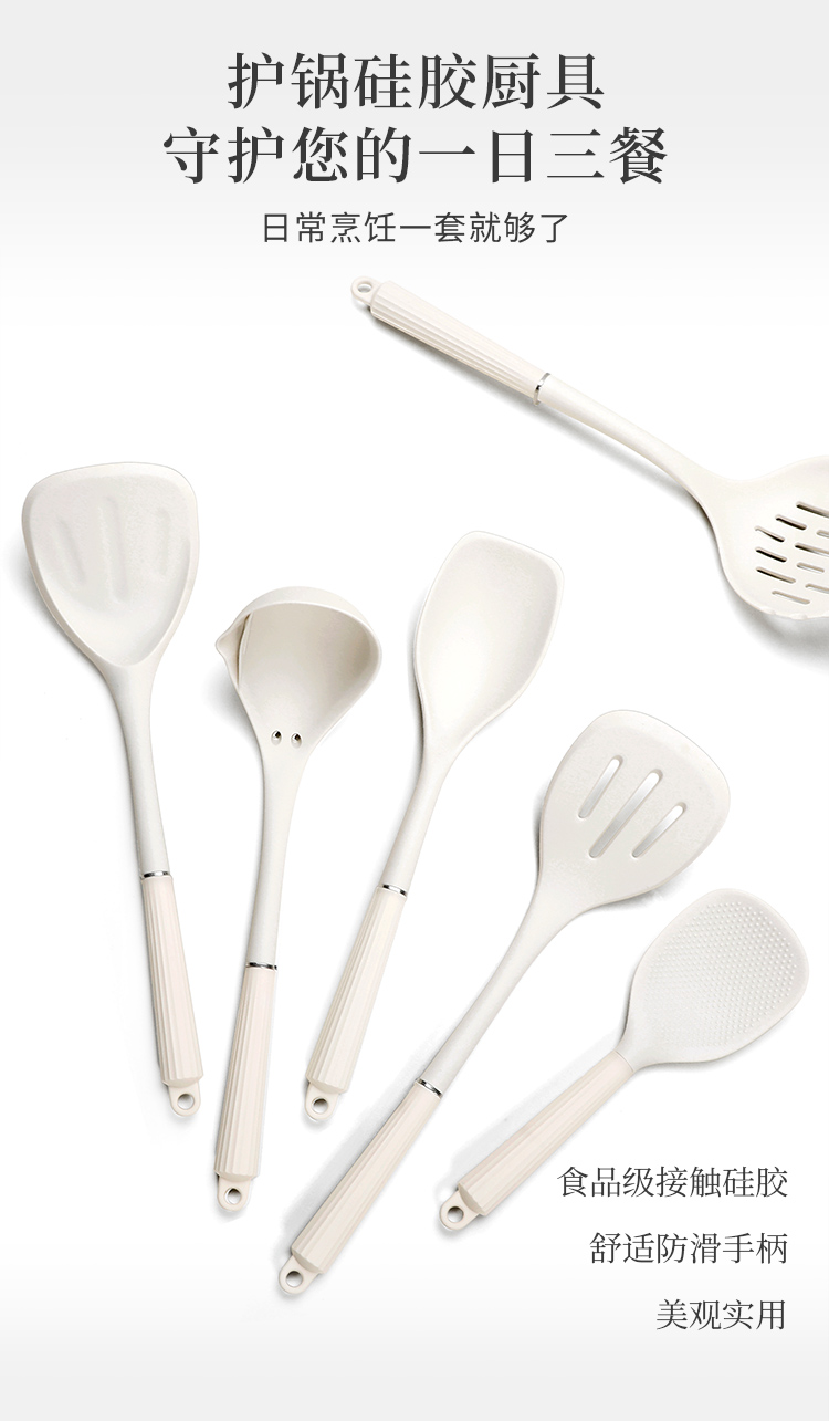 • 6종 세트 (다기능 주걱 + 수프 스푼 + 소쿠리 + 밥 스푼 + 실리콘 클립 + 스탠드)