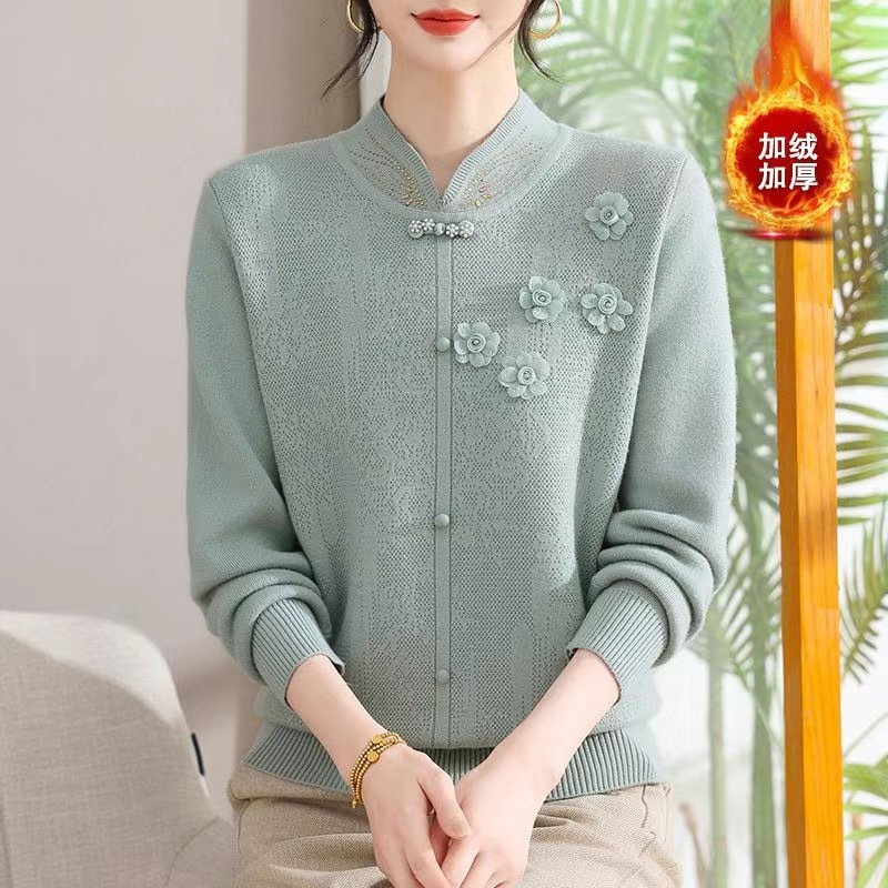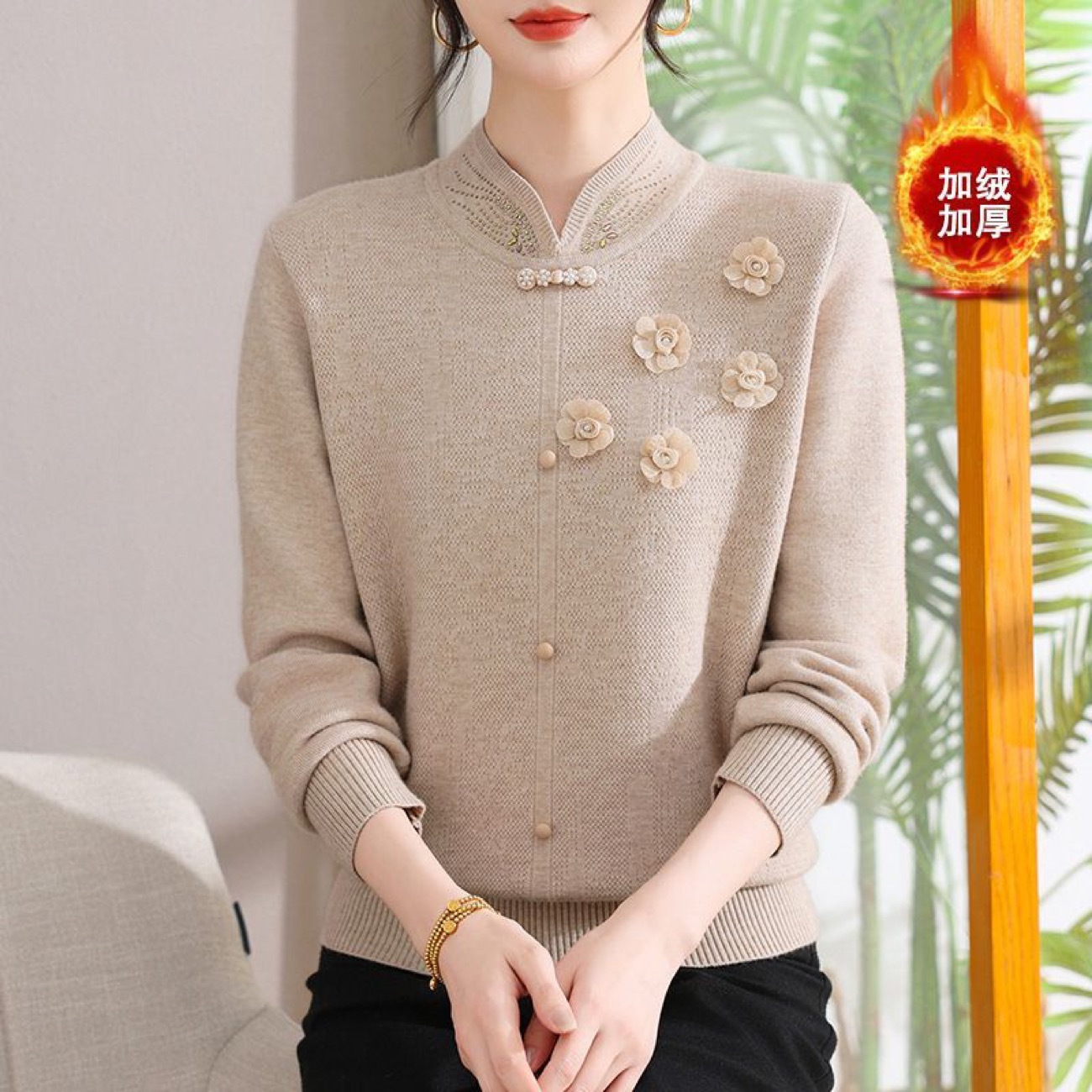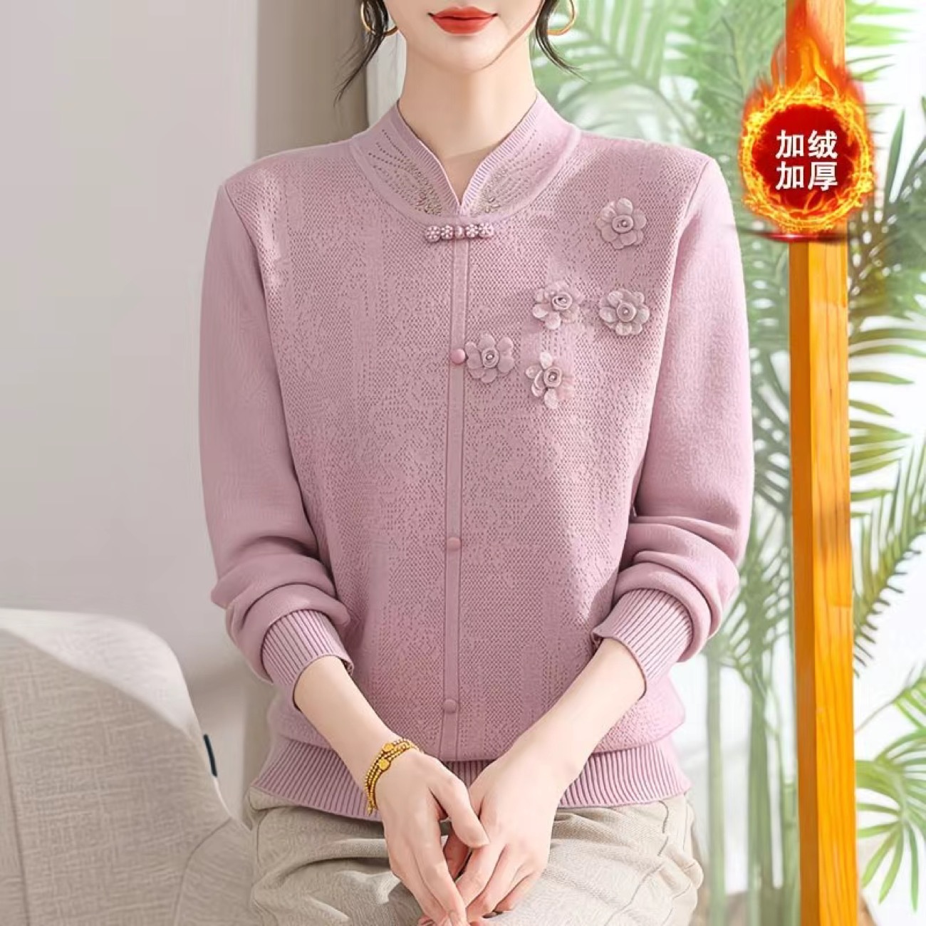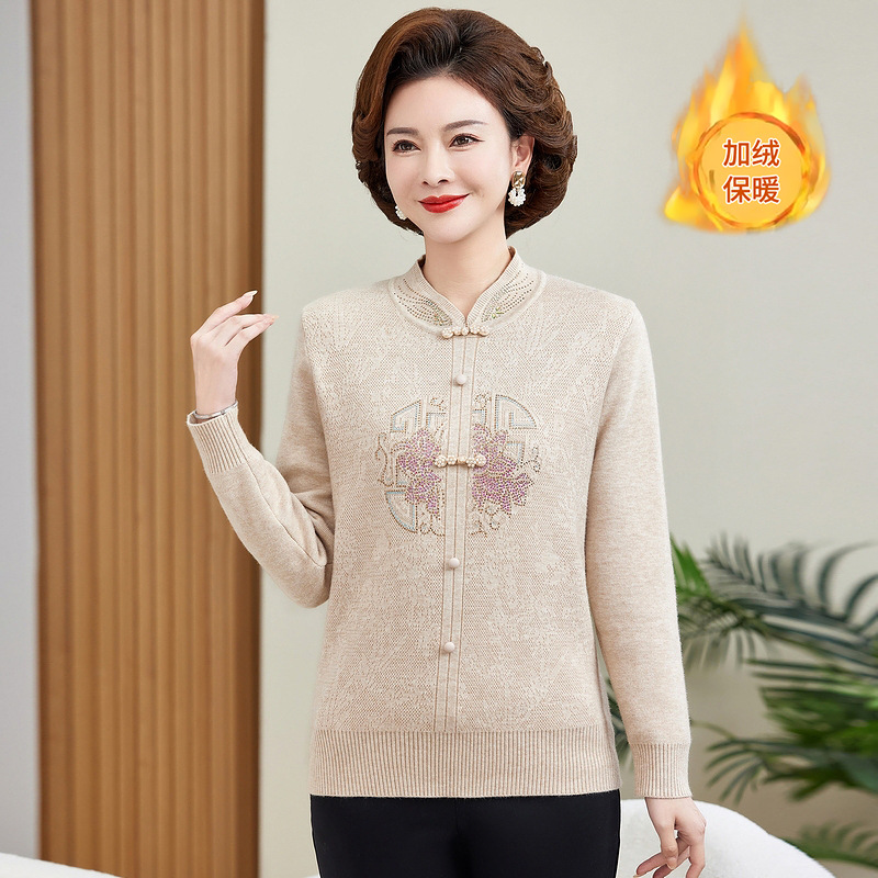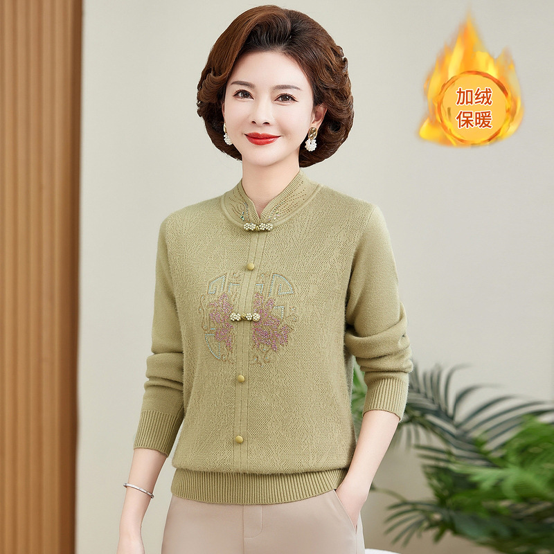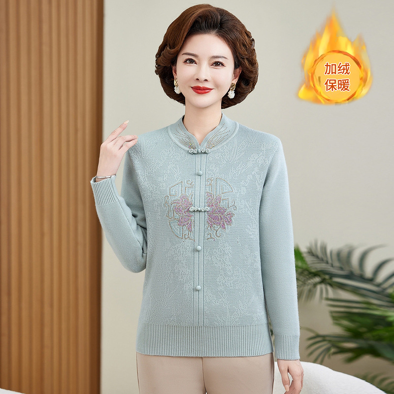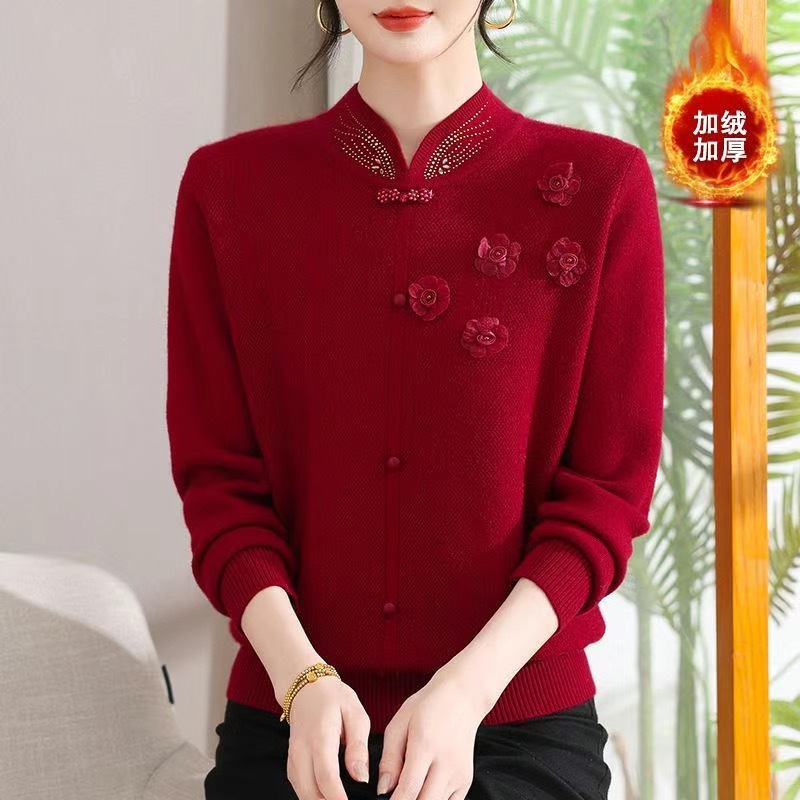 겨울 어머니의 기모 스웨터 중년 및 노인 니트웨어 여성 최고 서양 스타일 두꺼운 따뜻한 시어머니 빨간 옷스토어 가기