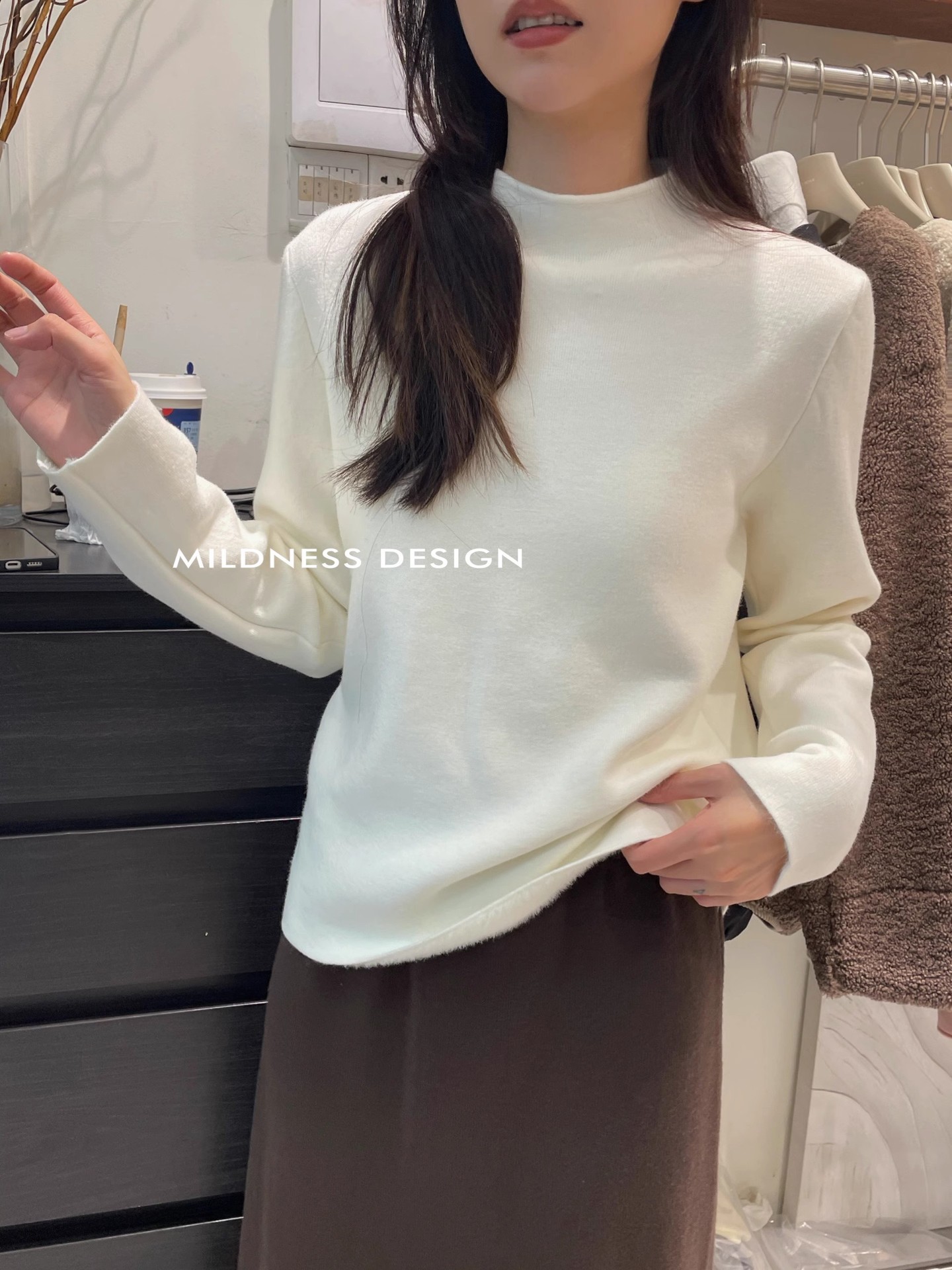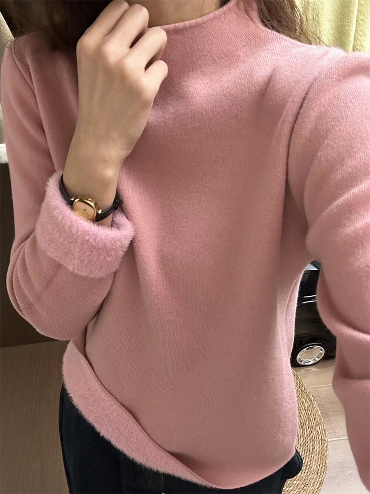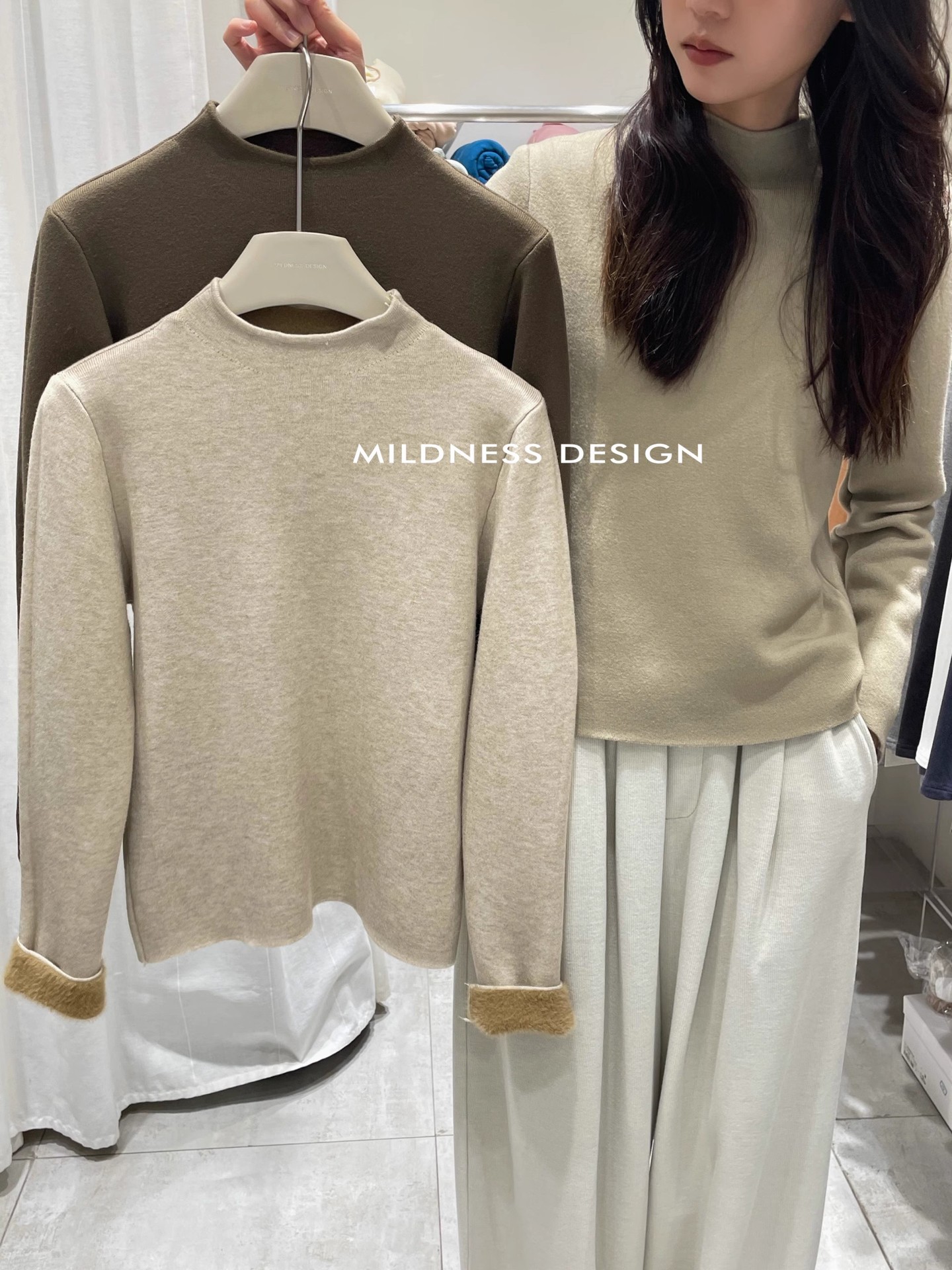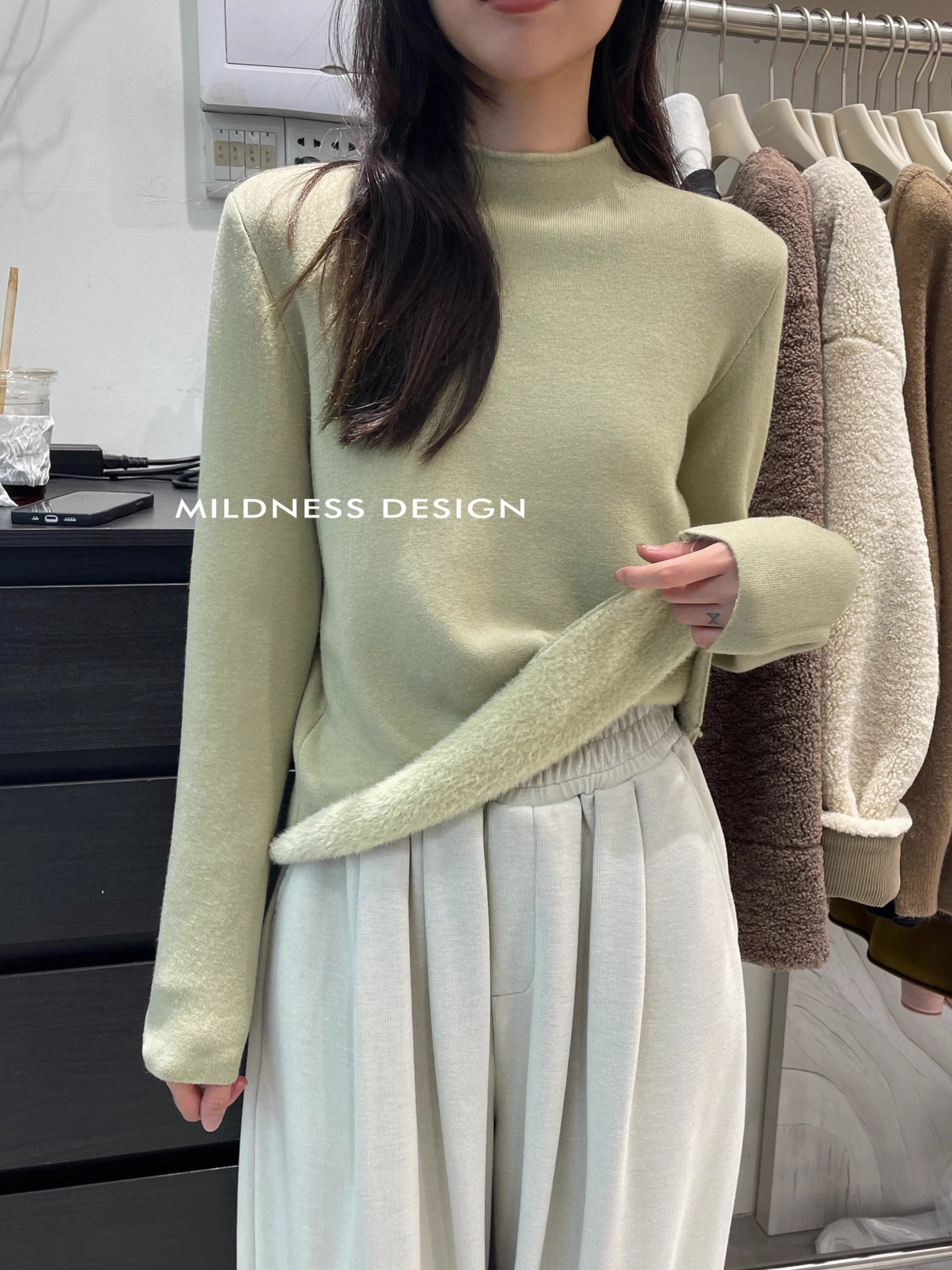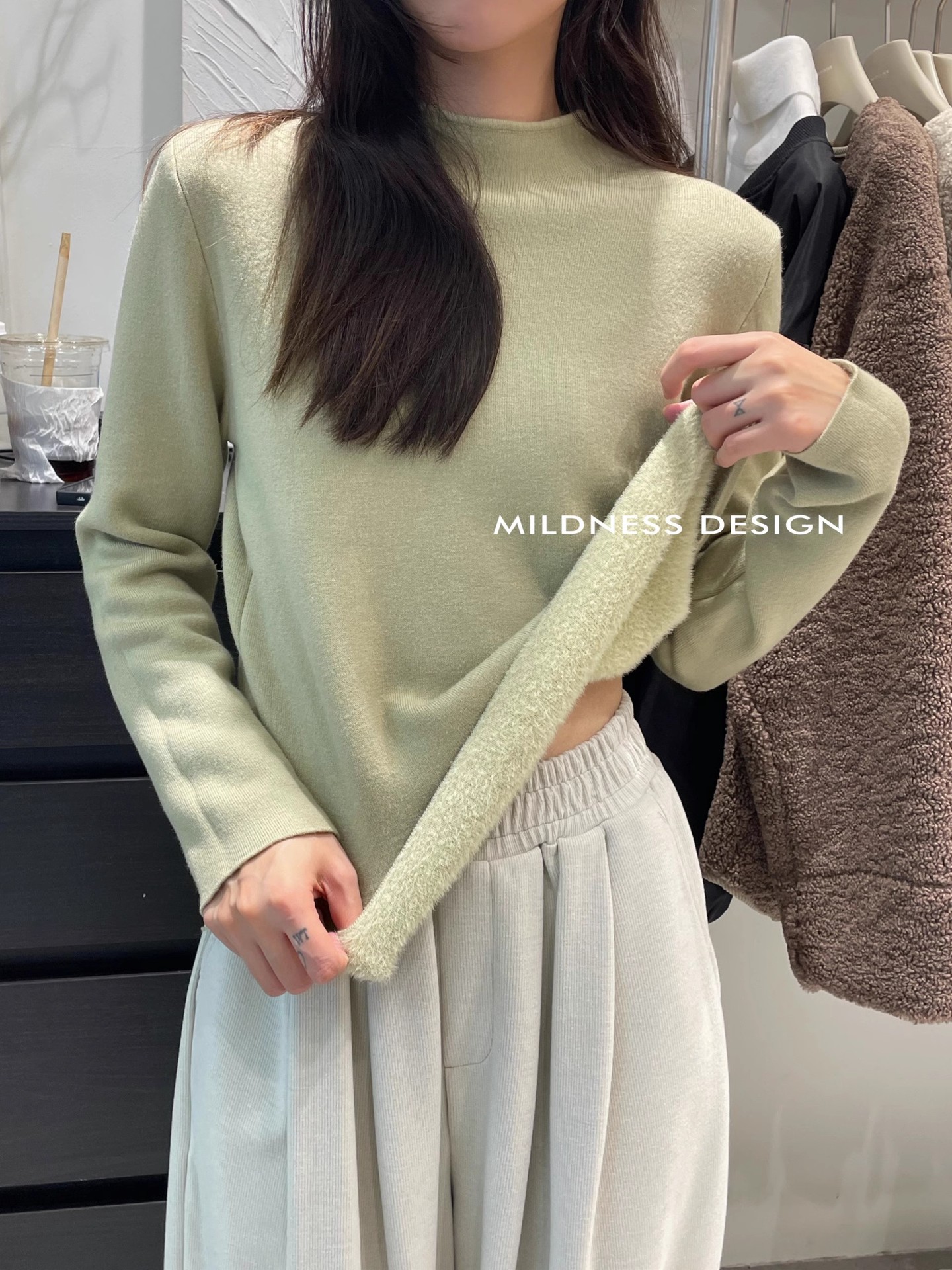 도파민 스타일 기모 두꺼운 니트베이스 셔츠 여성의 가을과 겨울 모든 경기 슬리밍 단색 간단한 내부 스웨터 한국 스타일스토어 가기