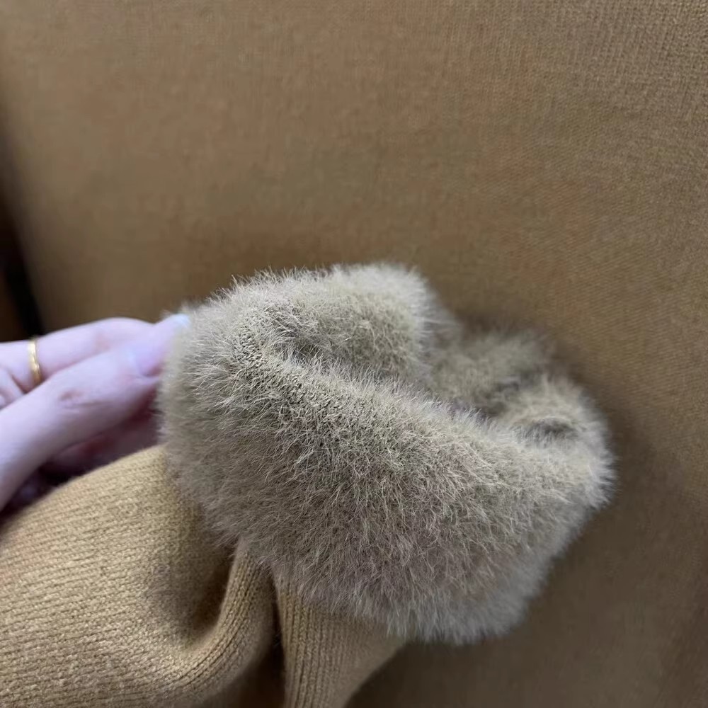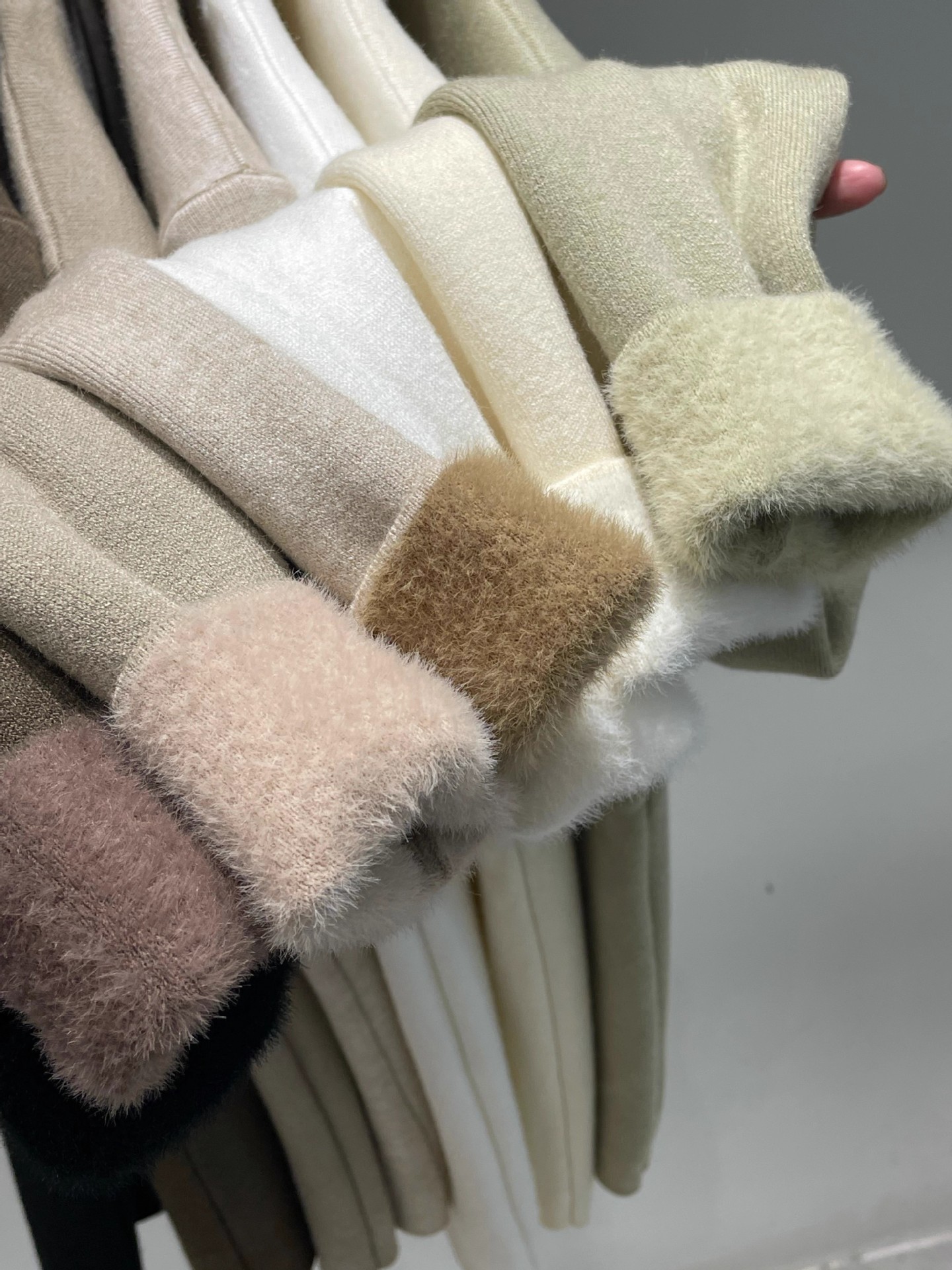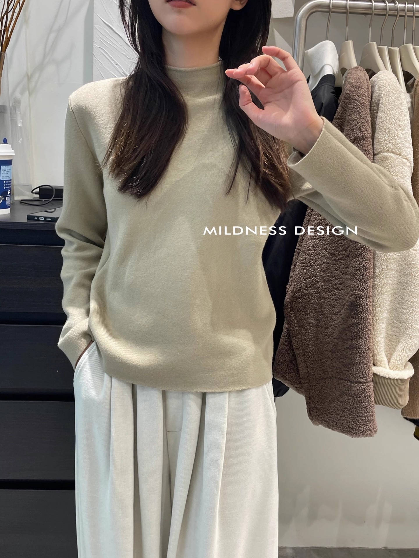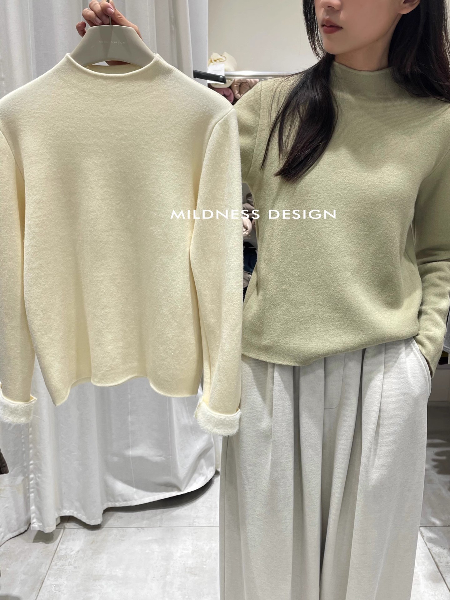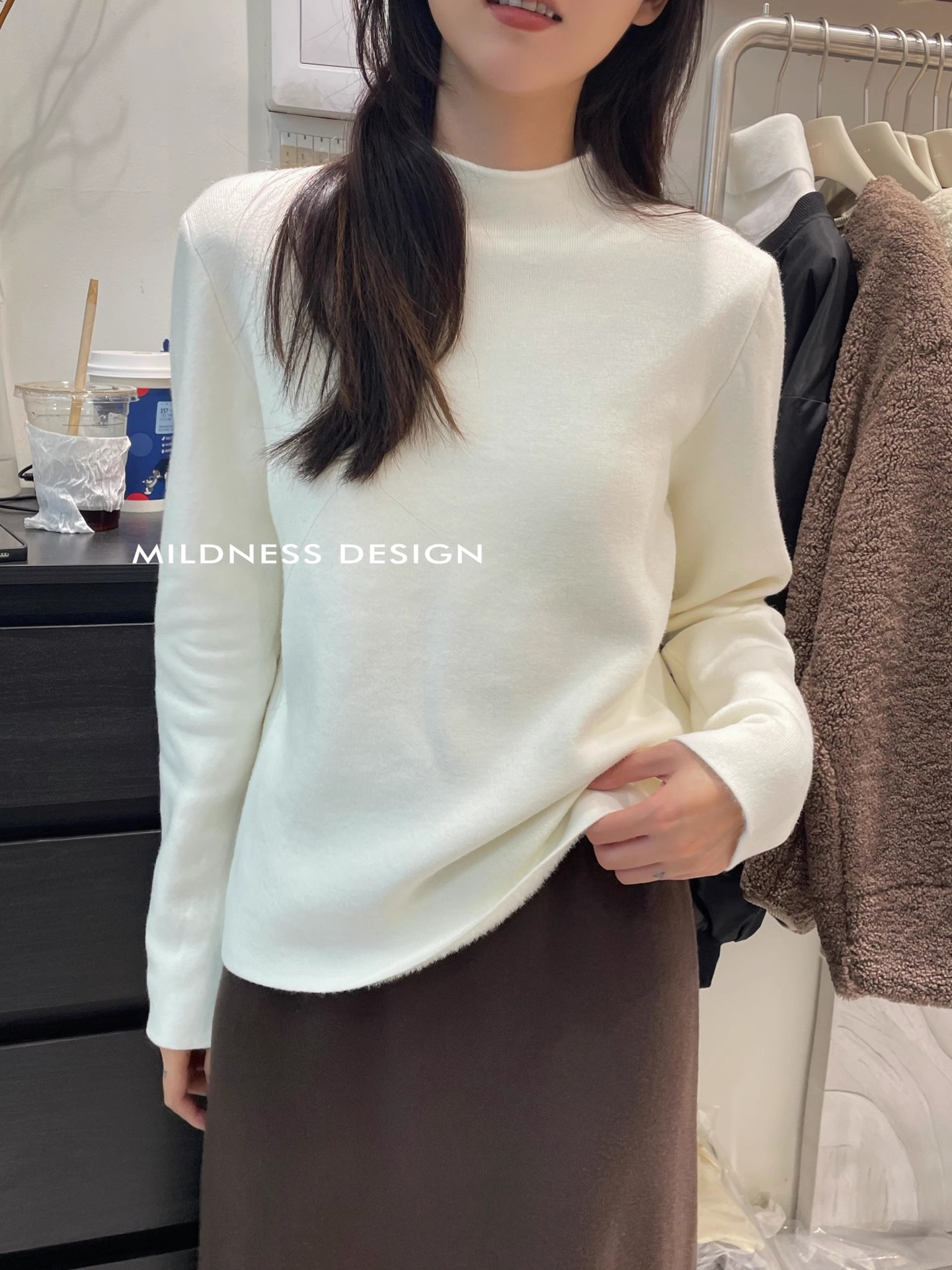 도파민 스타일 기모 두꺼운 니트베이스 셔츠 여성의 가을과 겨울 모든 경기 슬리밍 단색 간단한 내부 스웨터 한국 스타일스토어 가기