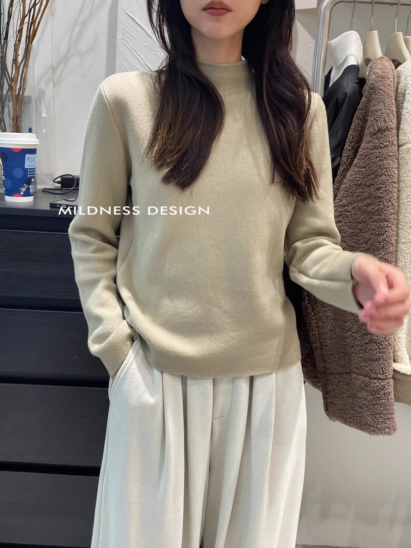 도파민 스타일 기모 두꺼운 니트베이스 셔츠 여성의 가을과 겨울 모든 경기 슬리밍 단색 간단한 내부 스웨터 한국 스타일