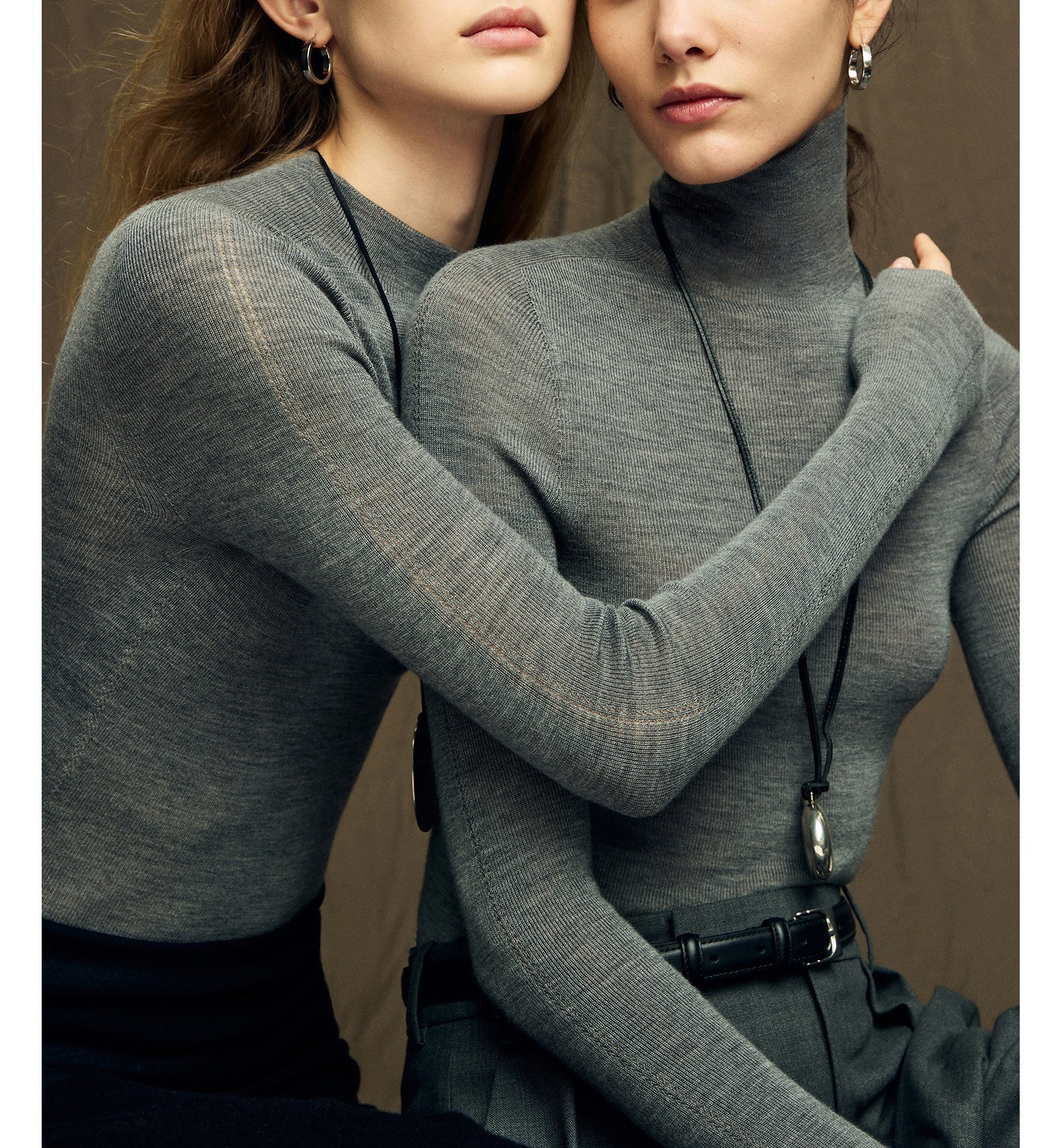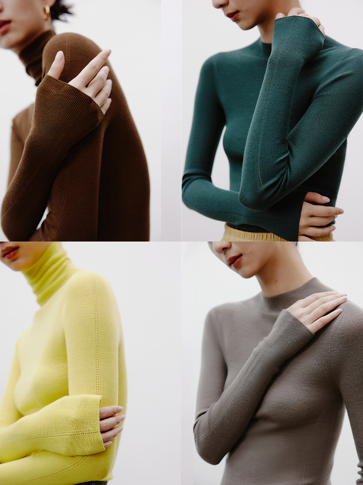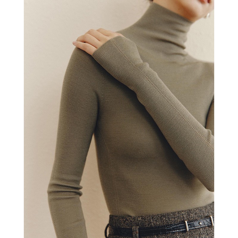 이탈리아 럭셔리 120s 세탁 가능 160s 골드 울 18 바늘 원활한 바닥 스웨터 여성용 탑