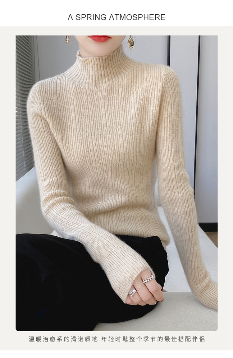 가을과 겨울 새로운 울 스웨터 여자 하프 터틀넥 패셔너블 올 매치 탑 니트 컬러 내베이스 탑