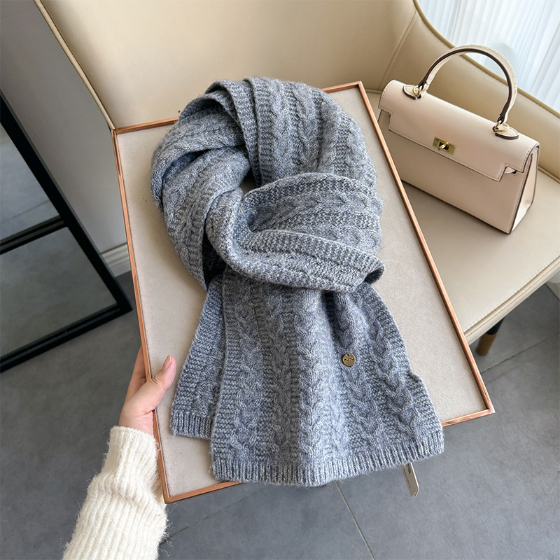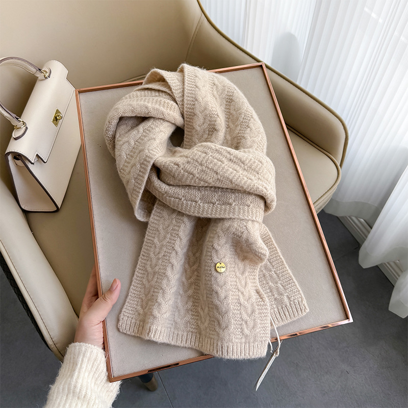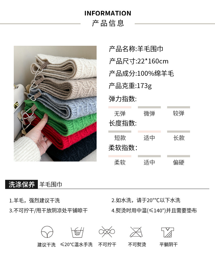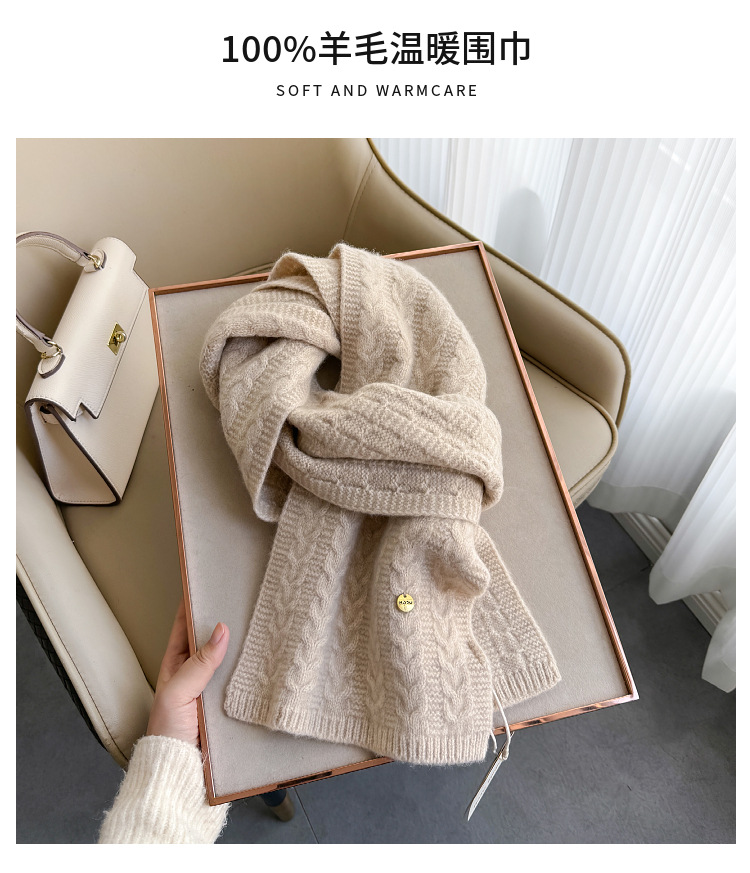 새로운 한국 스타일 간단한 단색 100% 양모 스카프 실용적인 선물 여성의 2024 가을과 겨울을위한 올 매치 따뜻한 스카프스토어 가기