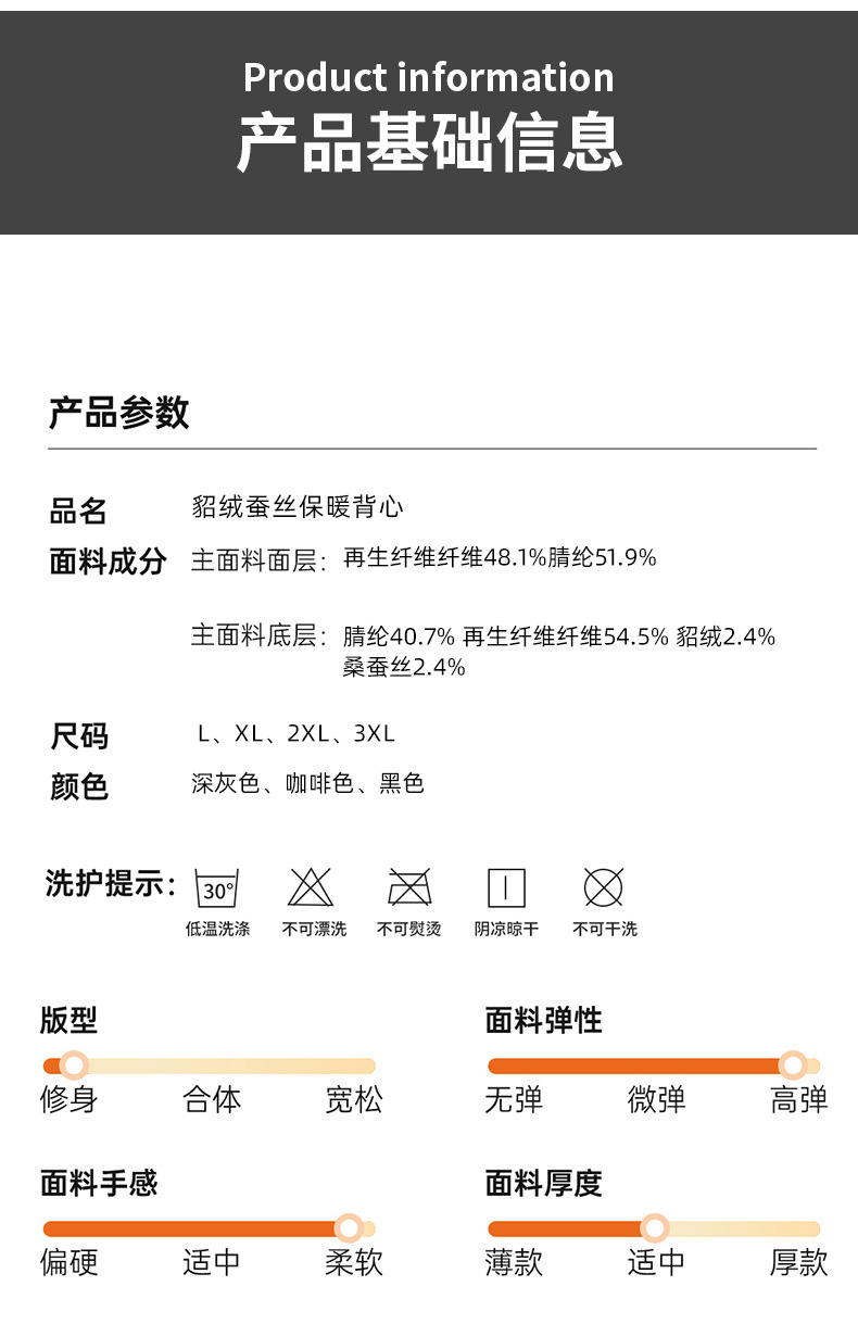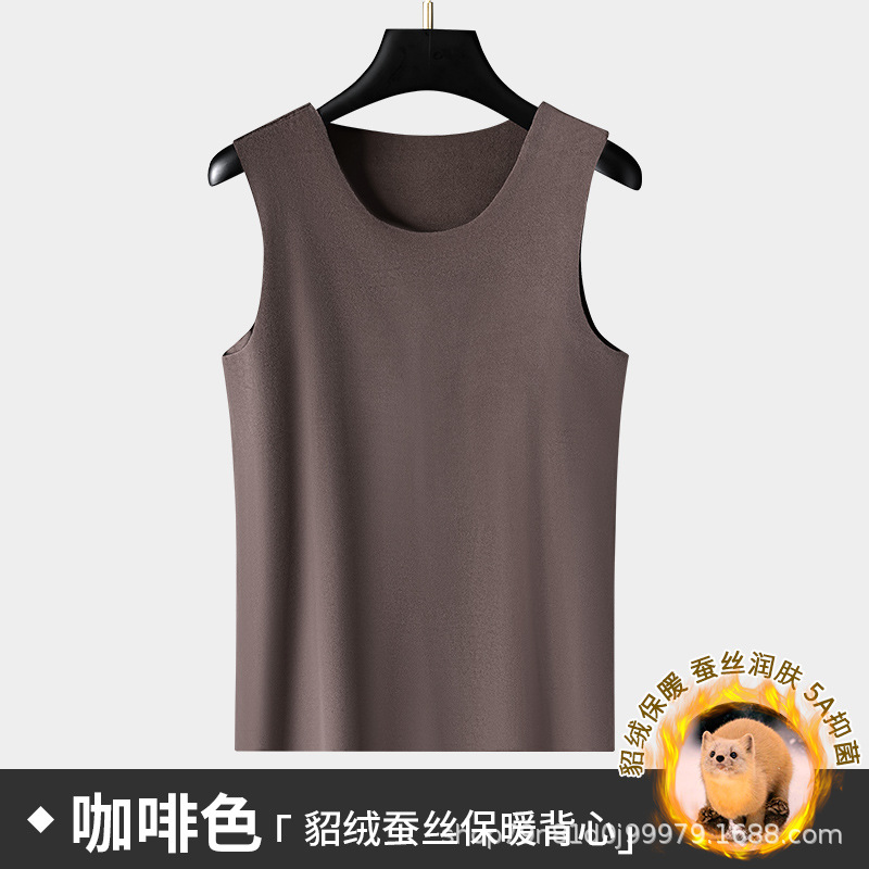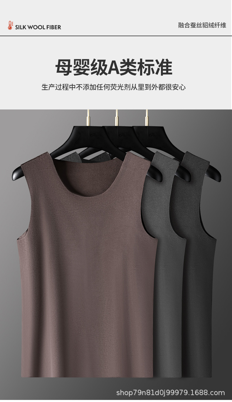 밍크벨벳 무봉제 남성용 보온조끼, 독일산 발열벨벳 안감, 가을 겨울용 방한 초두꺼운 조끼