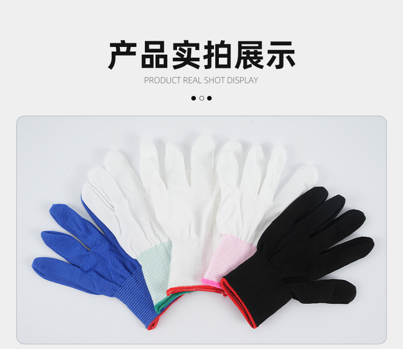 13 핀 흰색 광택 전자 제품 공장 노동 보호 장갑 나일론 장갑 통기성 텍스트 놀이 기름칠 손 끈 bodhi