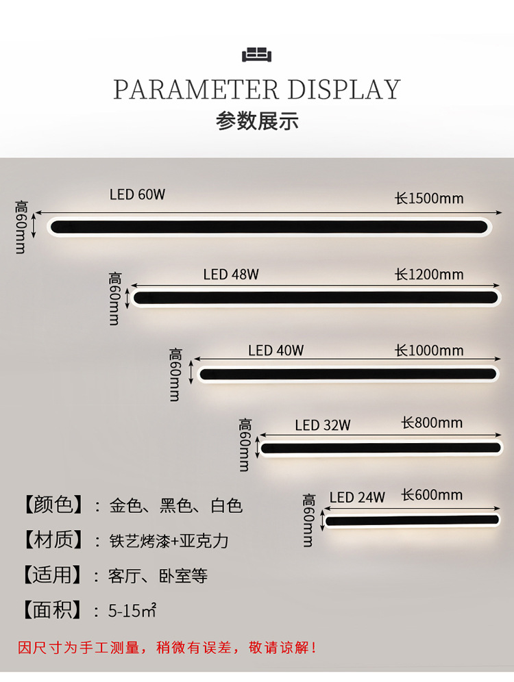 • 035 둥근 모서리 검정색 60*6cm 음성 제어 조명 오프라인 음성