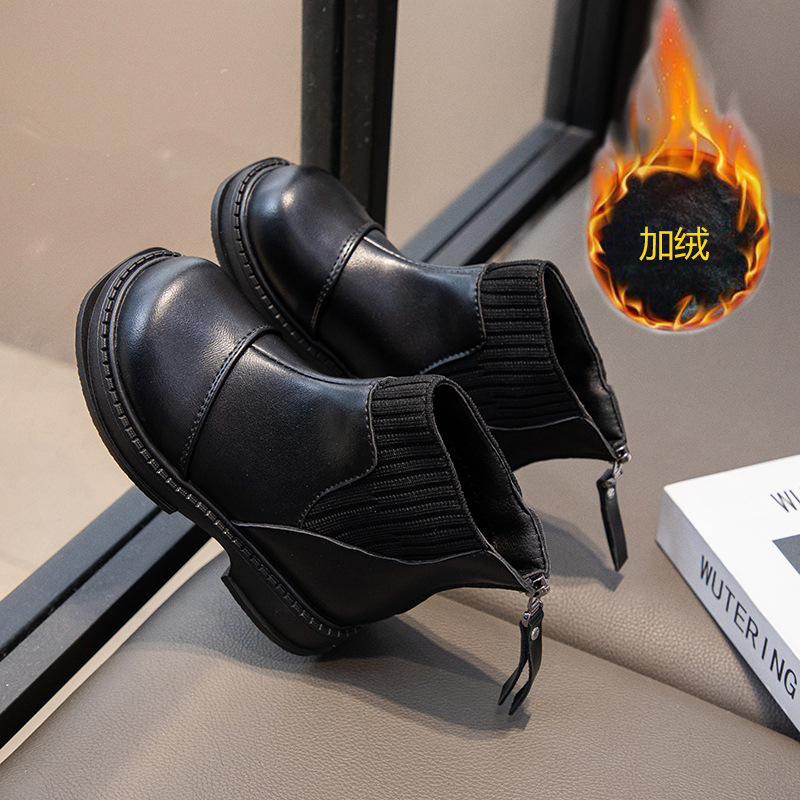 여아 숏부츠 2025 가을 겨울 신상 아동 마틴부츠 여아용 두꺼운 가죽부츠 중대형 아동용 플리스 안감 따뜻한 면부츠
