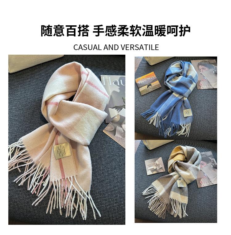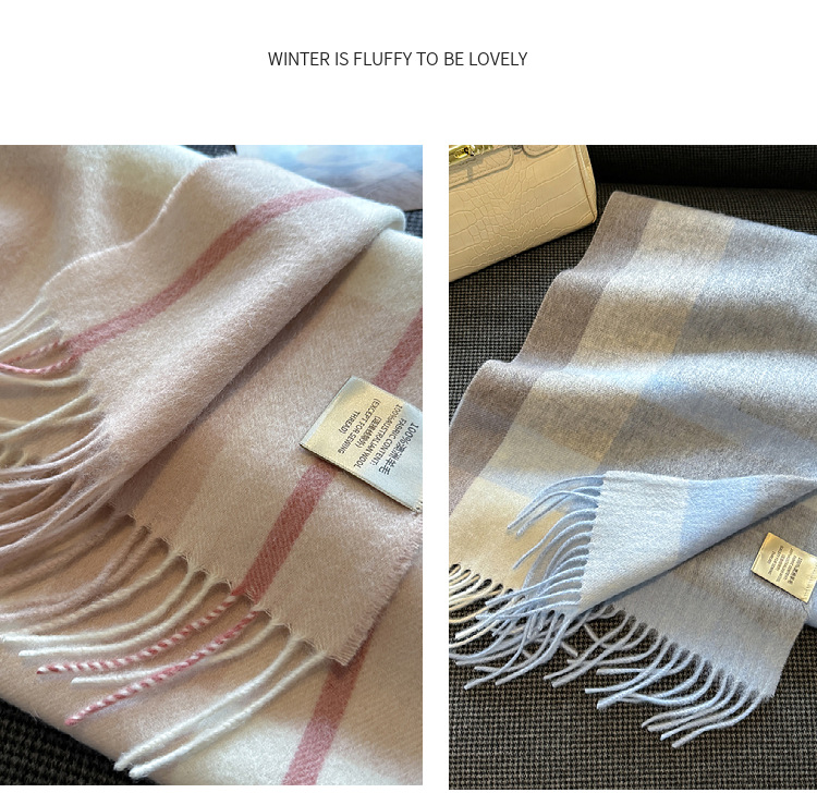 클래식 격자 무늬 양모 스카프 여자 가을 겨울 폭발 모든 경기 호주 양모 스카프 따뜻한 100% 양모 목도리