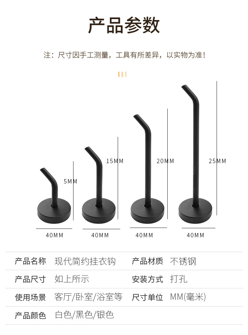 • 검정색 코끼리 트렁크 후크 10CM 길이에는 일반 나사가 함께 제공됩니다.