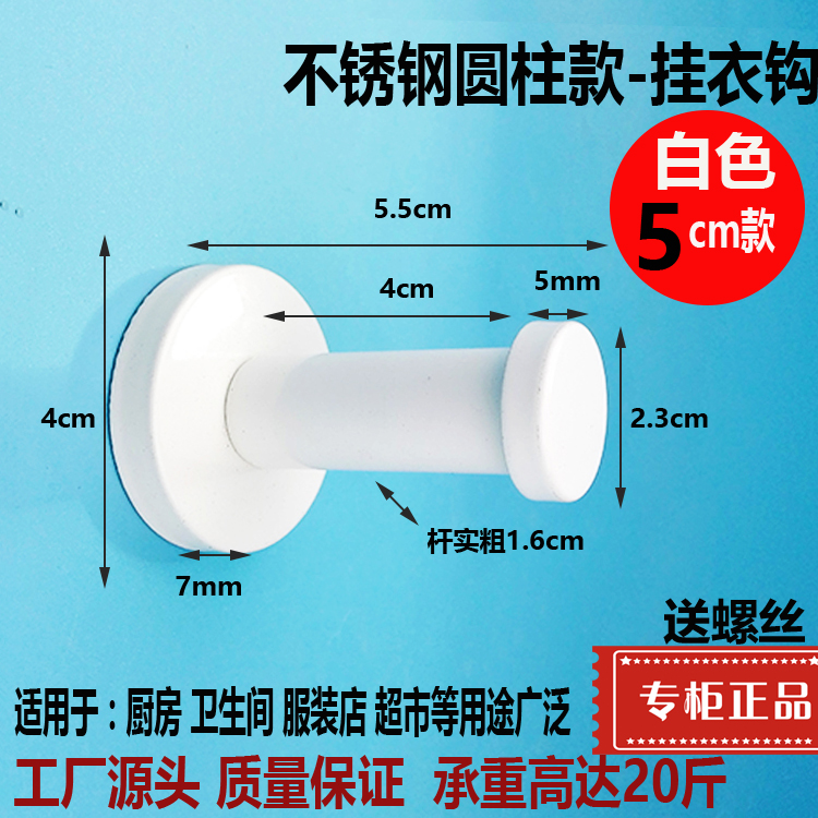 • 벽걸이형 원통형 후크 흰색-5CM 나사 포함