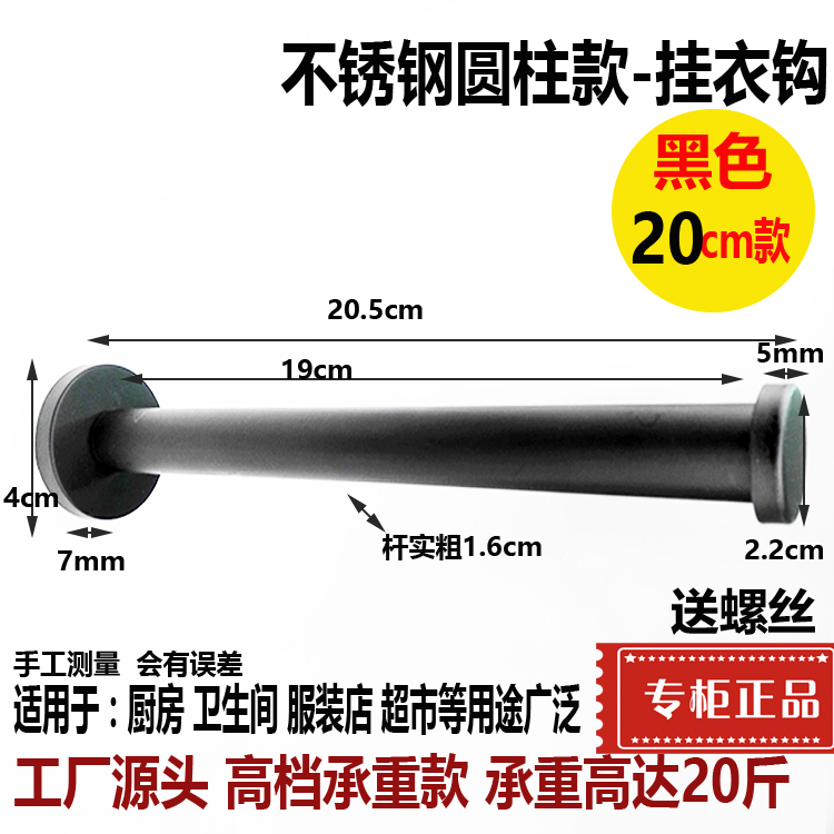 • 벽걸이형 원통형 후크 검정색 - 20CM 나사 포함