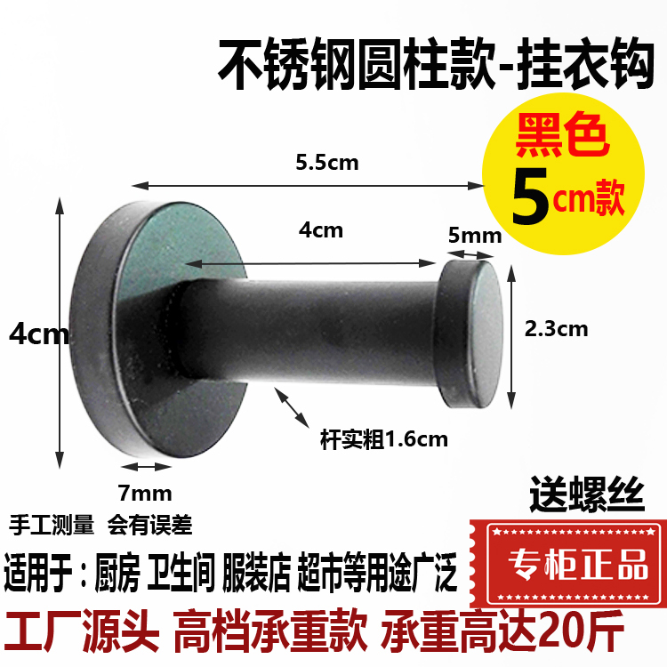 • 벽걸이형 원통형 후크 검정색-5CM 나사 포함