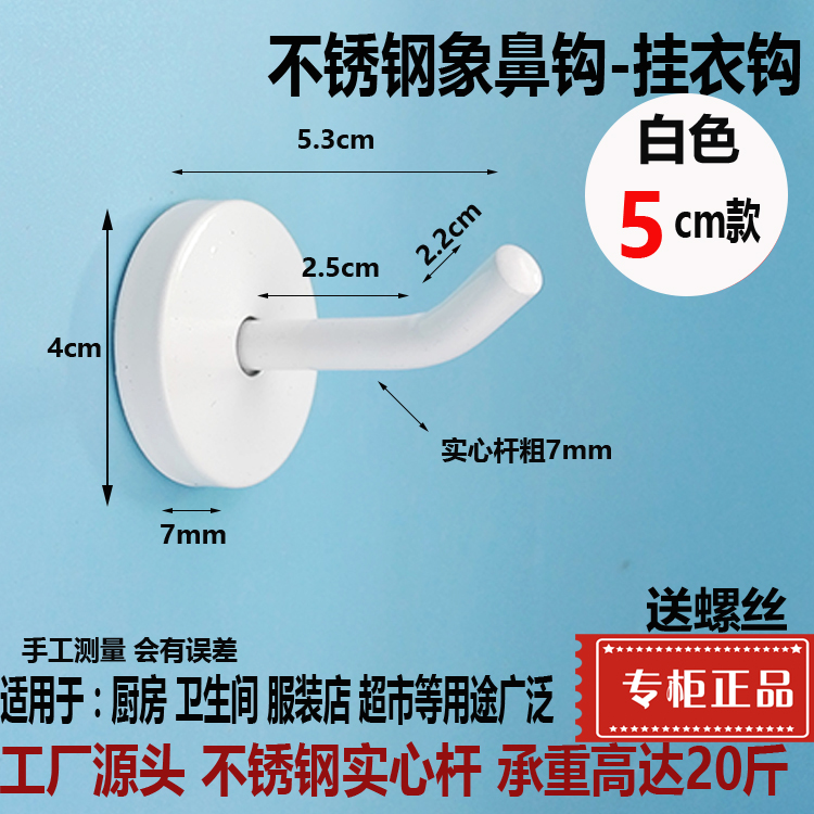 • 흰색 코끼리 트렁크 후크 5CM 길이에는 일반 나사가 함께 제공됩니다.