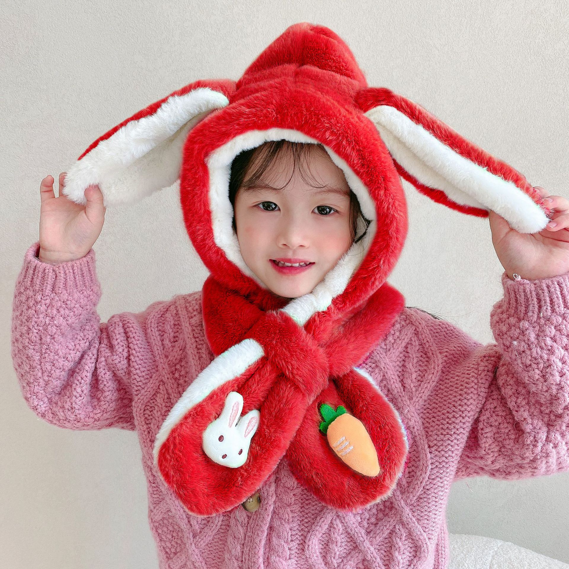 토끼 귀 어린이 모자와 스카프 한 두 조각 세트 소녀 겨울 두꺼운 따뜻한 봉제 귀 보호 캡 스카프