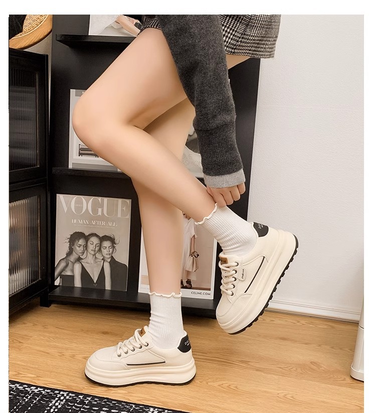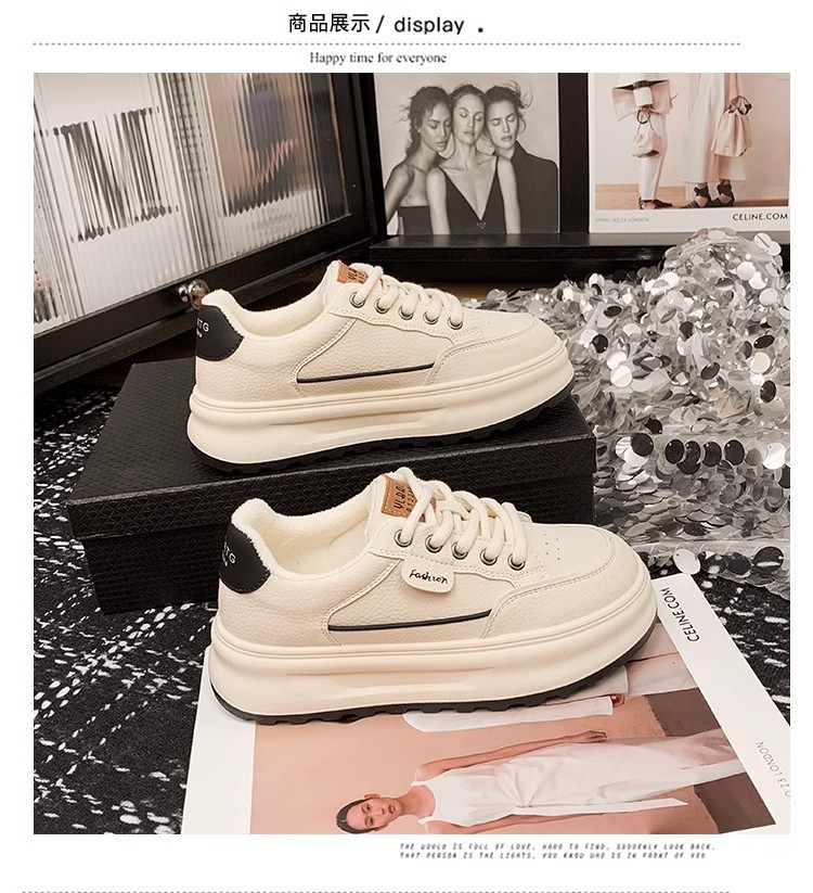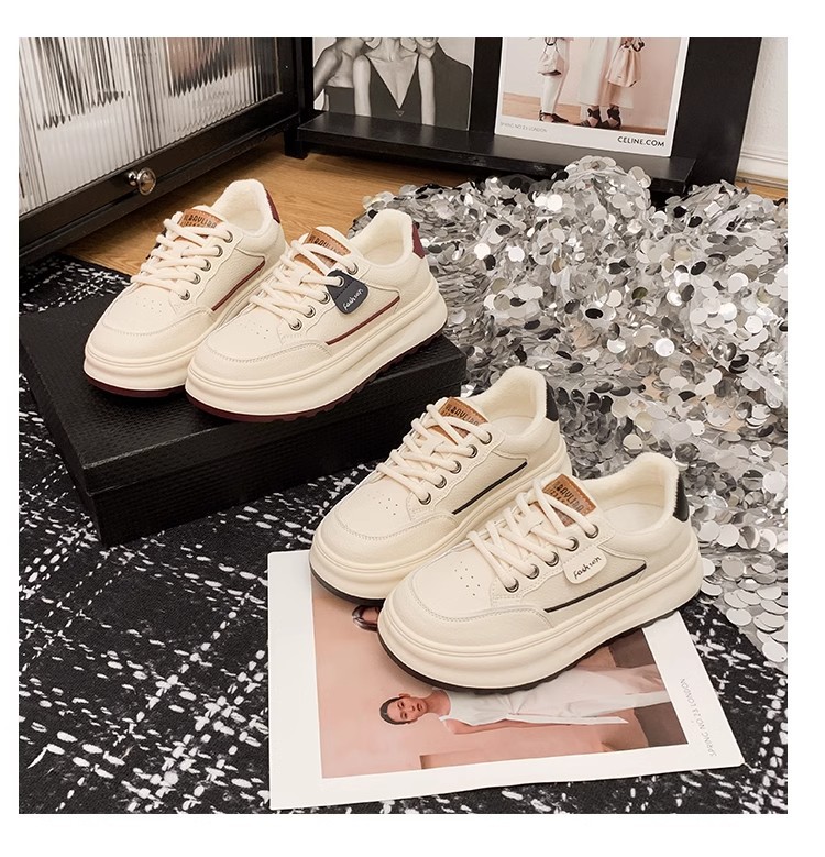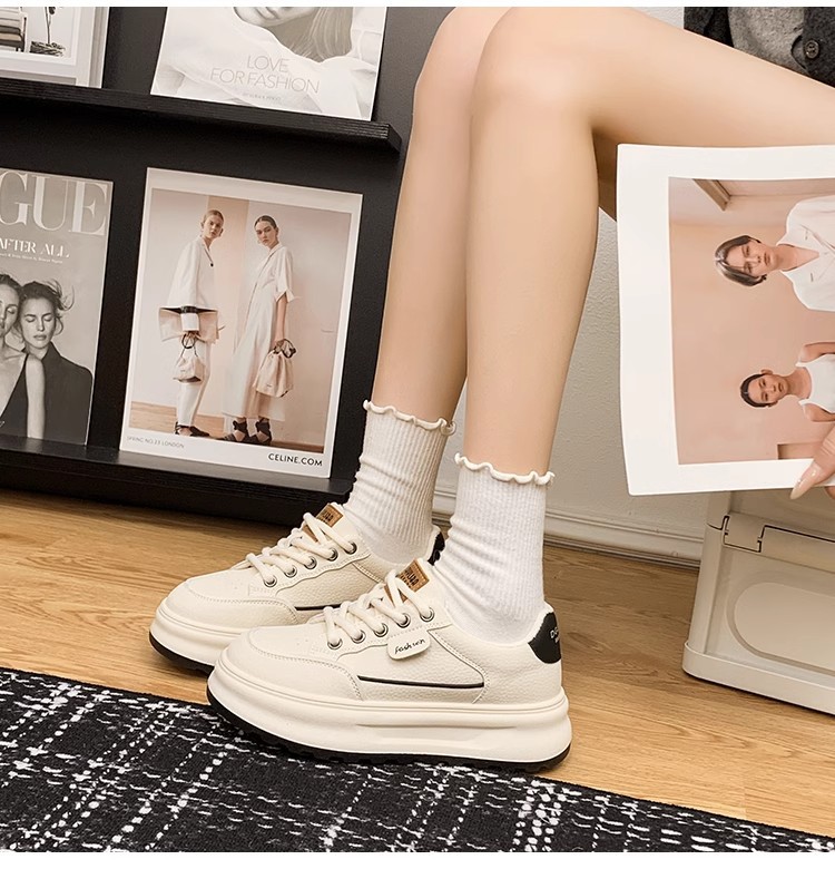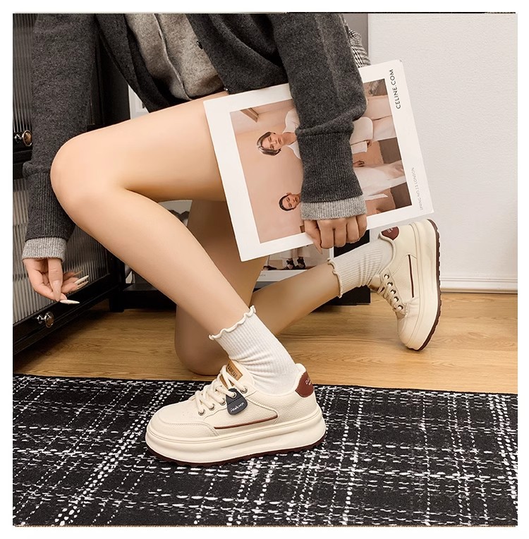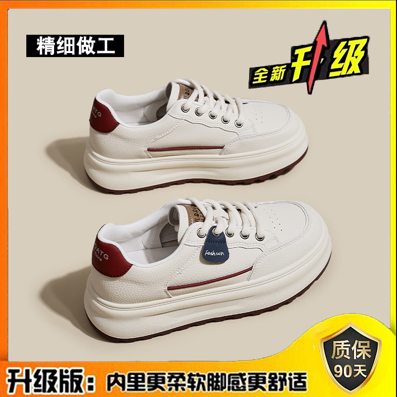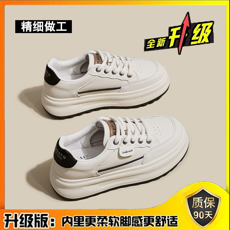 정품 가죽 두꺼운 밑창 흰색 신발 여성의 가을과 겨울 2024 새로운 기모 경량 운동화 폭발 모든 경기 스포츠 캐주얼 신발스토어 가기