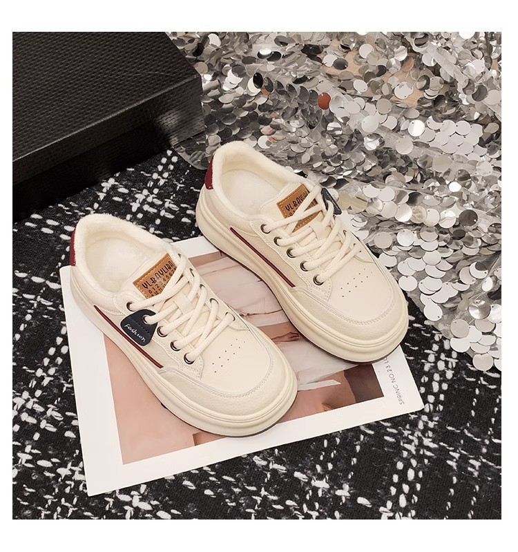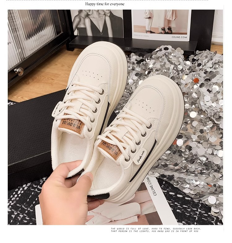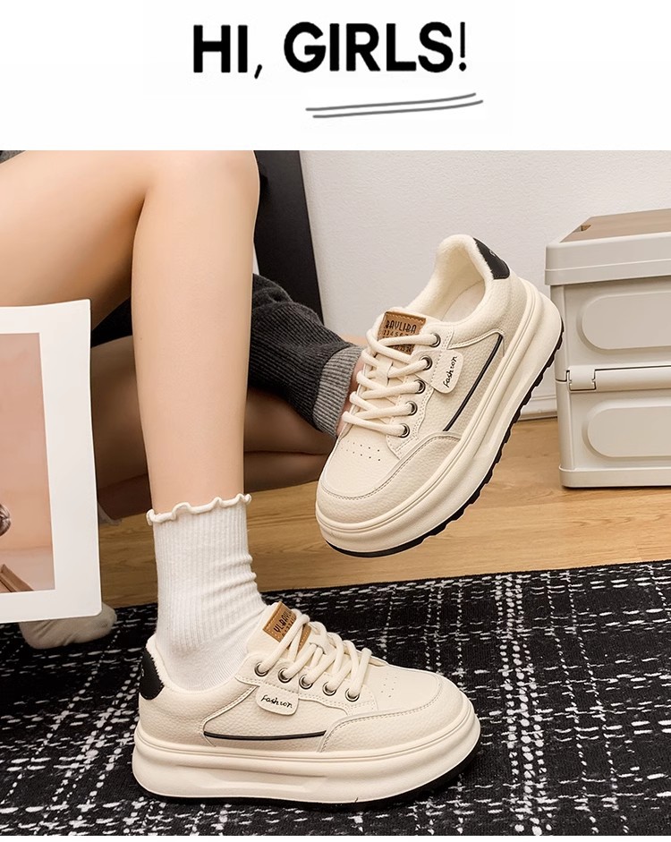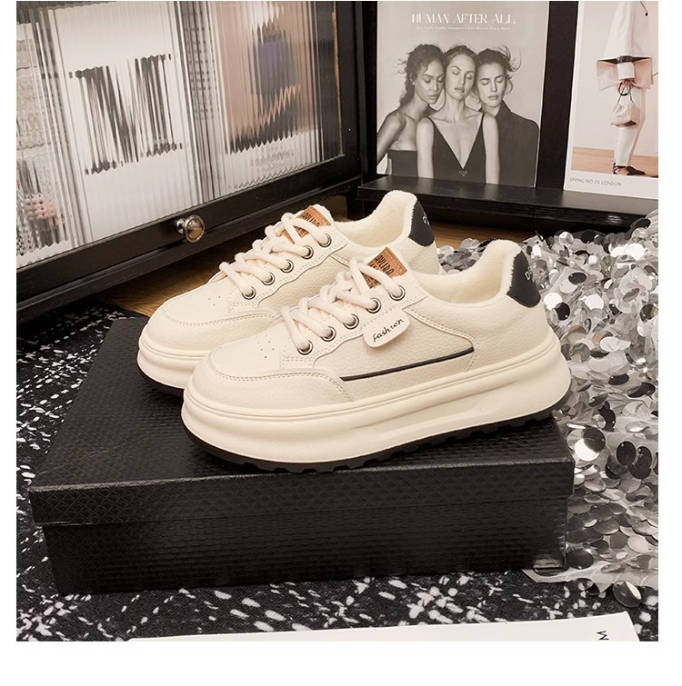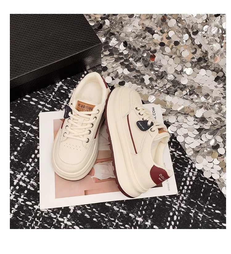 정품 가죽 두꺼운 밑창 흰색 신발 여성의 가을과 겨울 2024 새로운 기모 경량 운동화 폭발 모든 경기 스포츠 캐주얼 신발