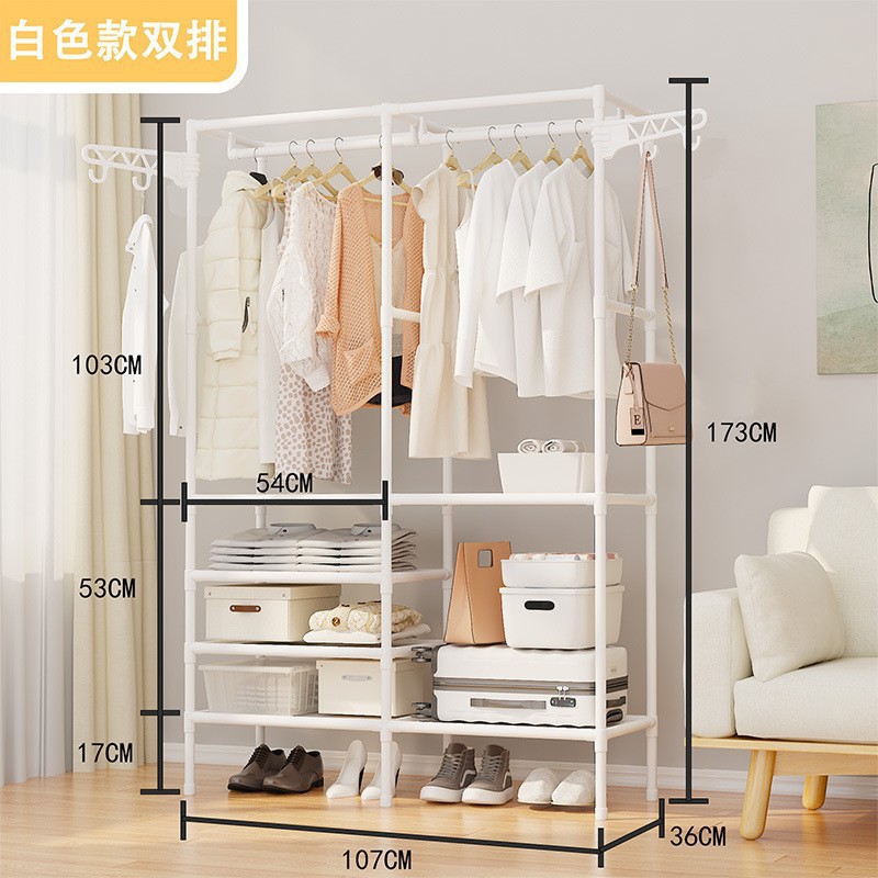 간단한 코트 걸이 다기능 바닥에 서있는 이중 행 옷 걸이 옷 걸이 옷 건조 랙 침실 홈 강화 패션 단순스토어 가기