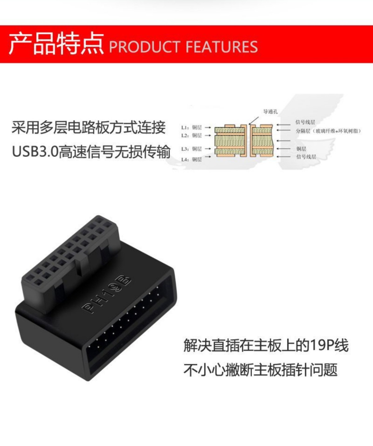 마더 보드 USB3.0 스티어링 헤드 데스크탑 마더 보드 직각 어댑터 90 도 19Pin 소켓 팔꿈치 USB 라우팅