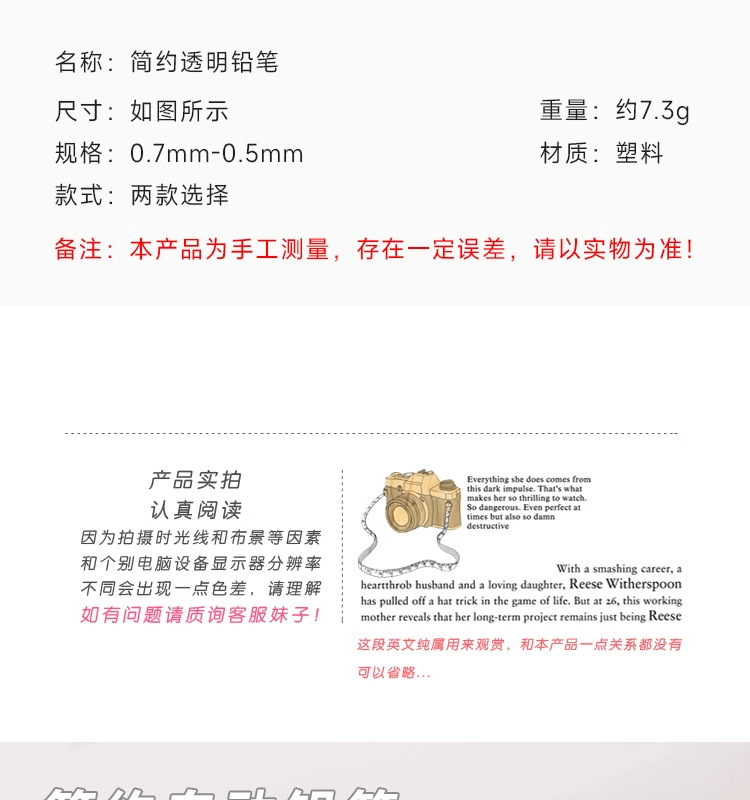 Tianzhuo 간단한 0.7 기계 연필 인쇄 바람 활동 연필 학생 0.5 프레스 연필 리드 선명 연필스토어 가기