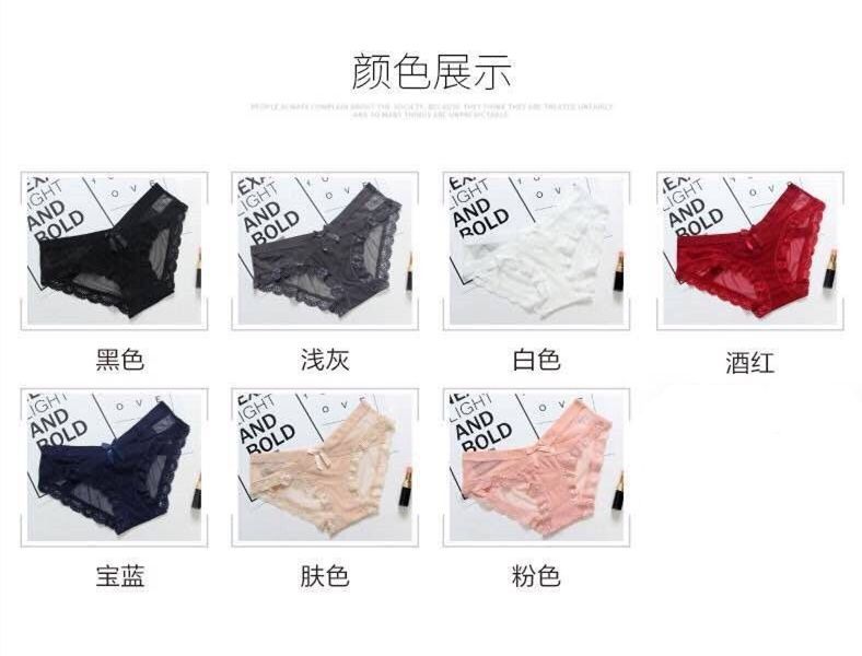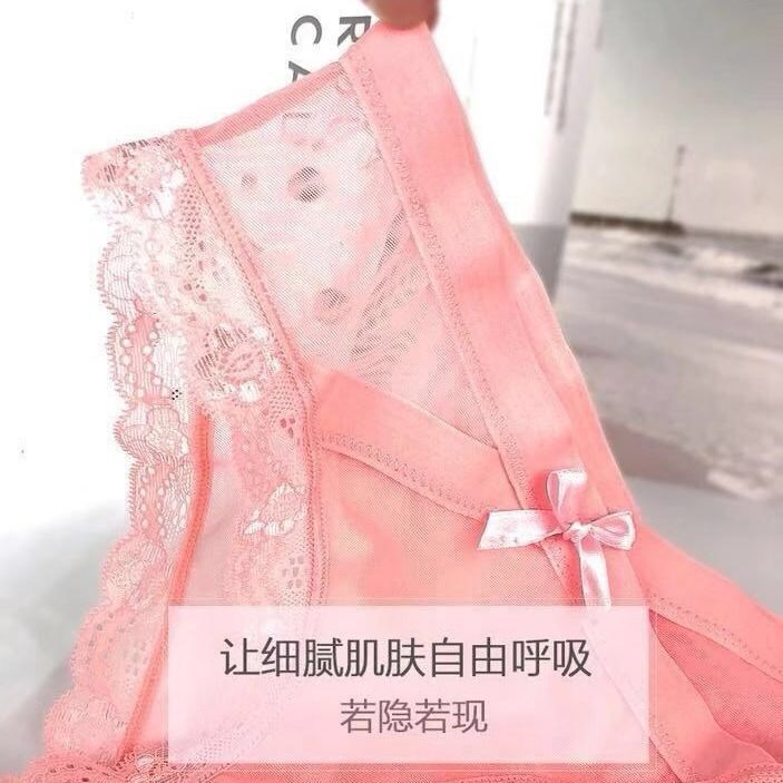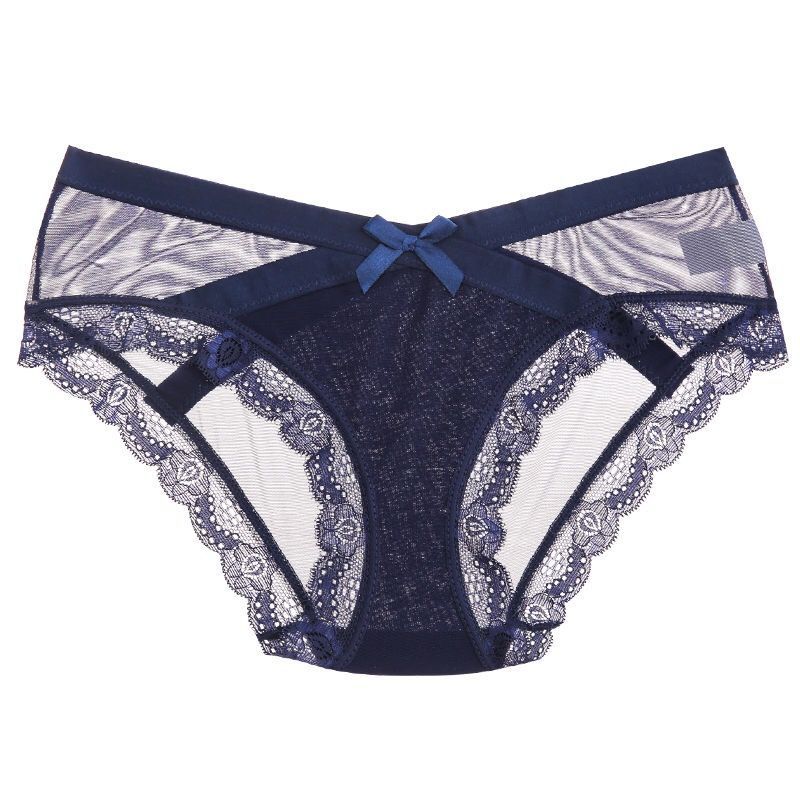 일본식 얇은 메쉬 속옷 여성의 낮은 허리 순수 코튼 Crotch 섹시한 투명한 편안한 활 레이스 투명한 브리프