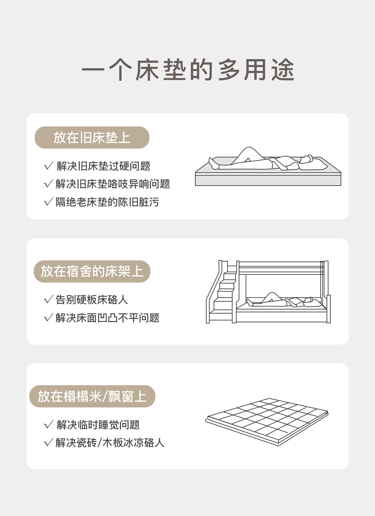 • 90*200*8cm (기숙사에 권장)