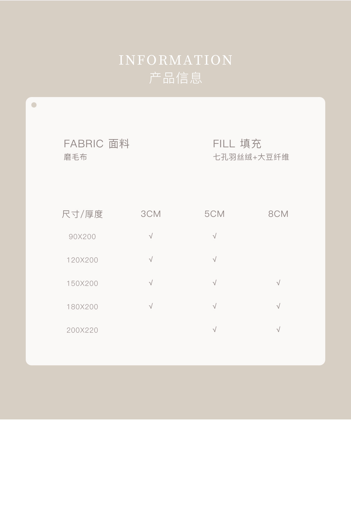 • 120*200*8cm (호텔 라벨룸에 권장)