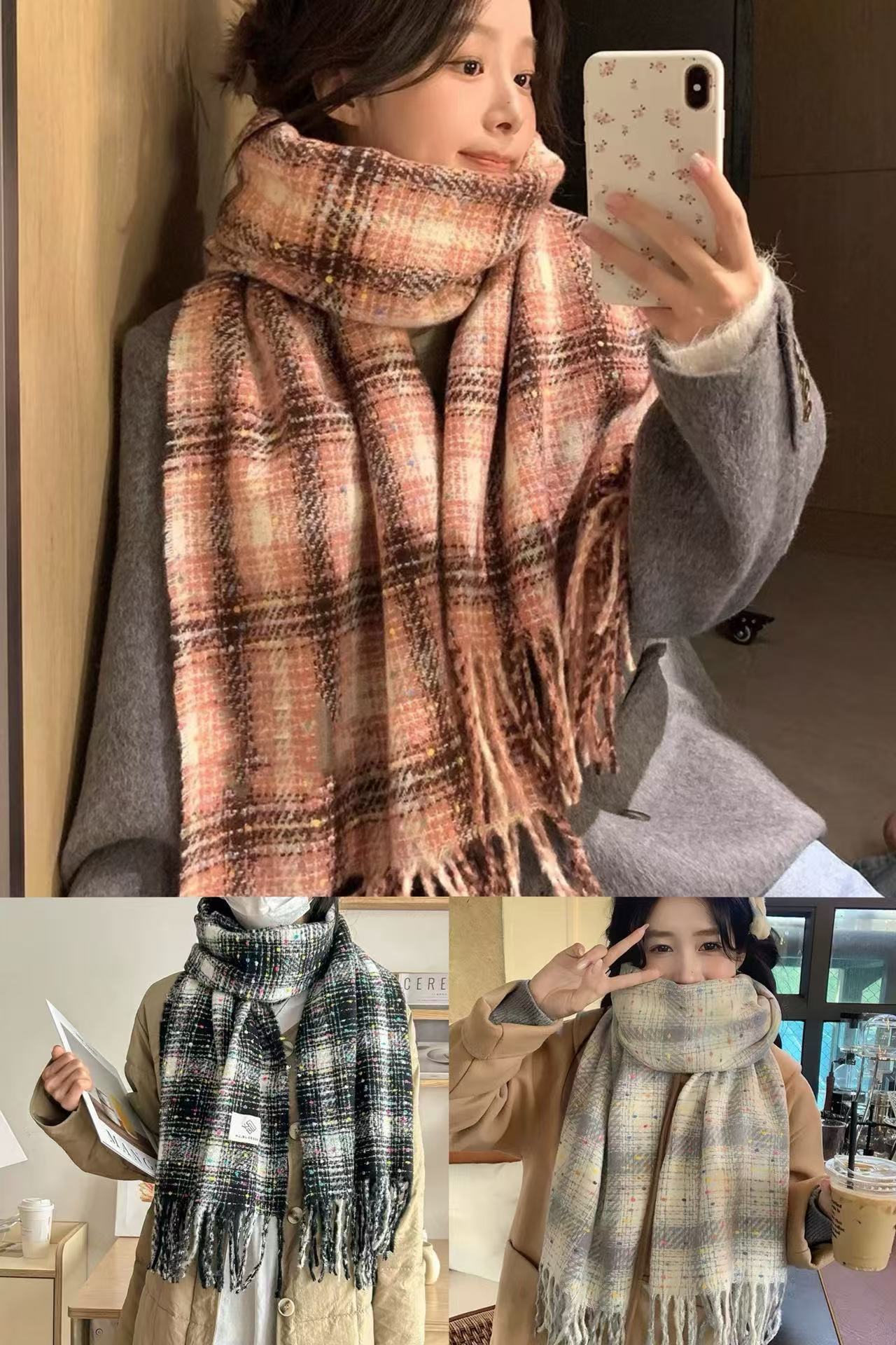 새로운 풀 스타 리버 민트 그린 스카프 슈퍼 화이트 분위기 소프트 왁스 스카프 레트로 숄 2024 Maillard스토어 가기