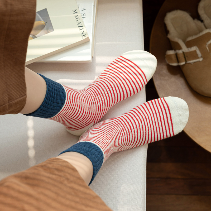 양말 여성의 가을과 겨울 두꺼운 따뜻한 테리 튜브 양말 일본 줄무늬 양말, 트렌디 한 인터넷-유명한 한국 스타킹스토어 가기