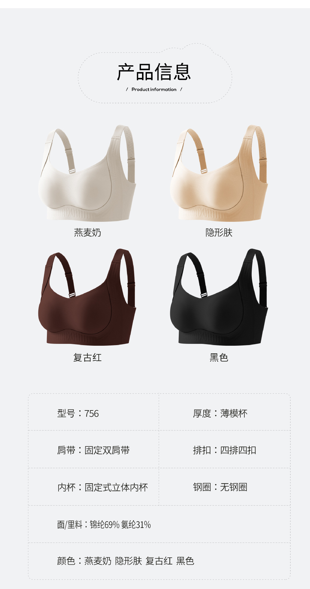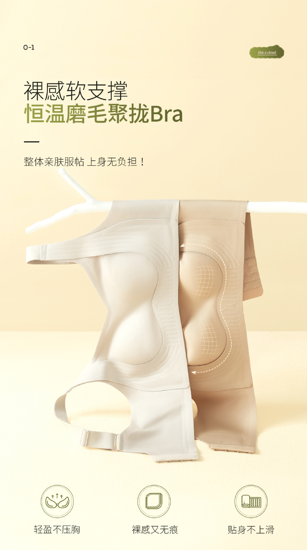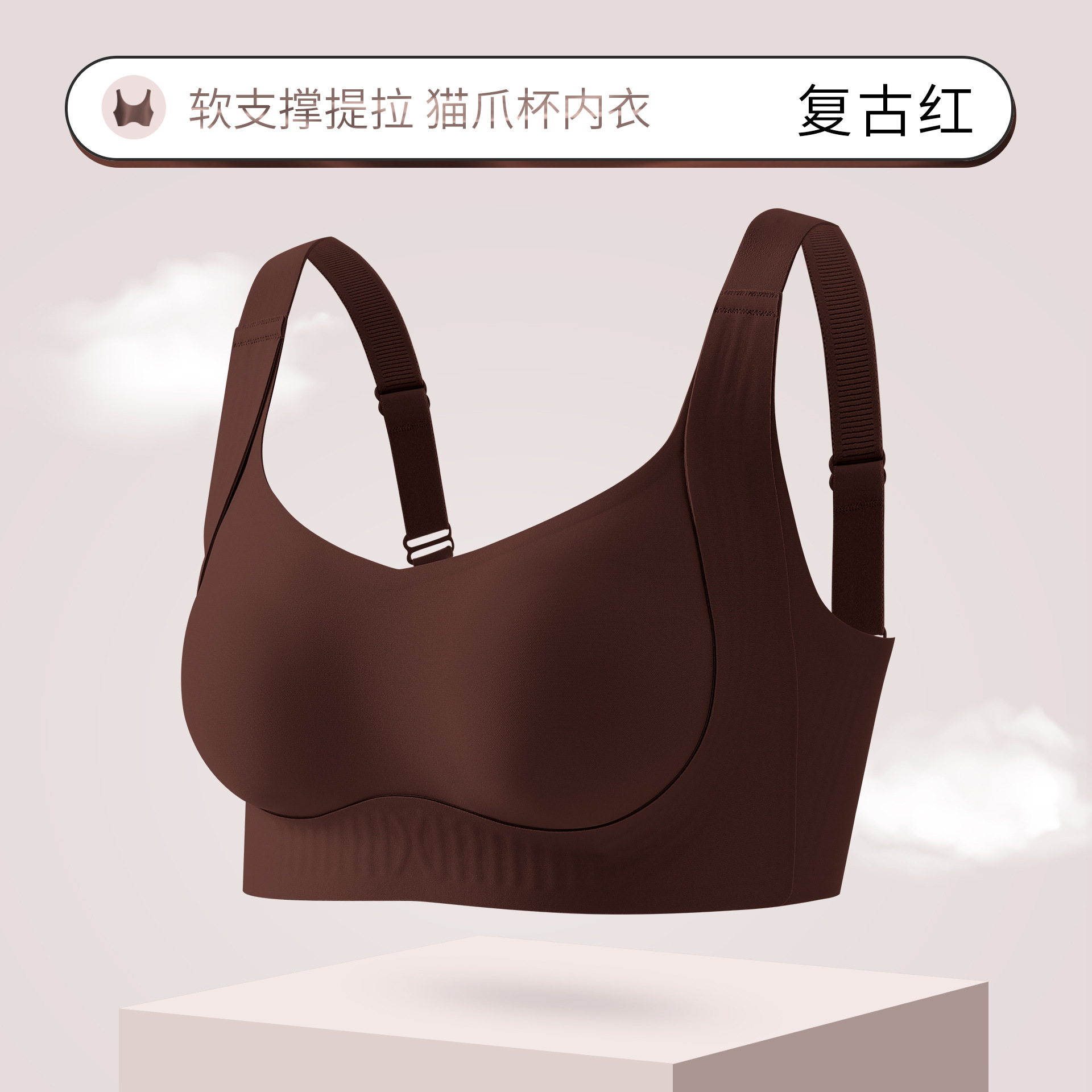 7A抗菌无痕裸感提拉大码内衣固定猫爪杯软支撑透气聚拢收副乳文胸