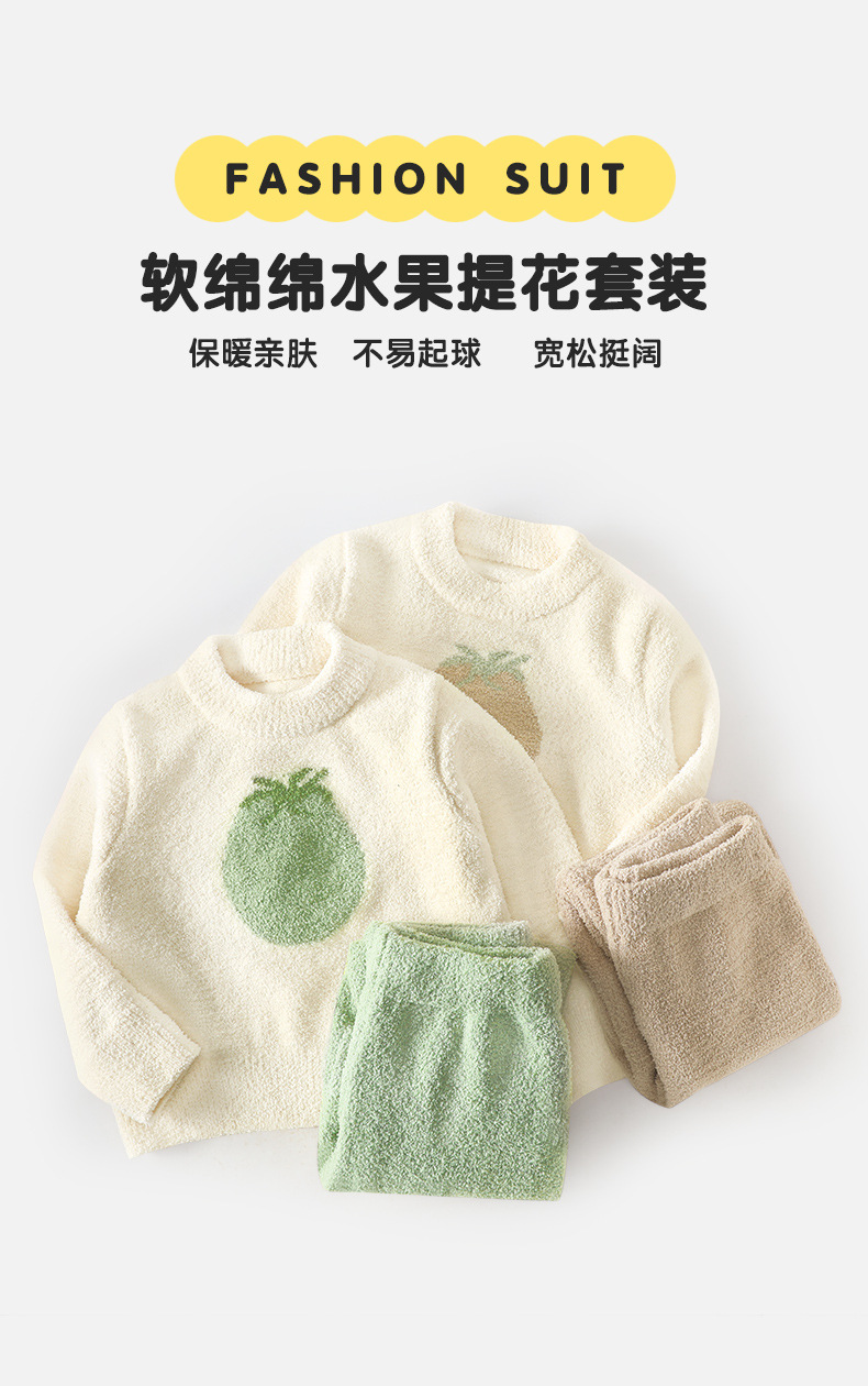 새로운 어린이 부드러운 과일 자카드 세트 겨울 두꺼운 홈 옷 세트 소년의 따뜻한 둥근 목 파자마스토어 가기