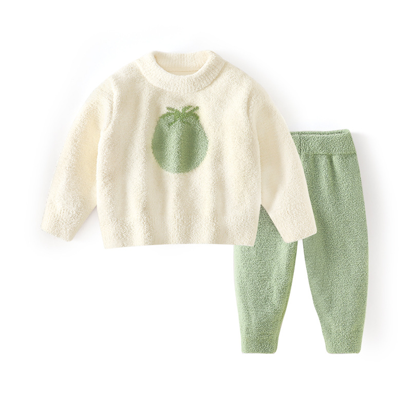 새로운 어린이 부드러운 과일 자카드 세트 겨울 두꺼운 홈 옷 세트 소년의 따뜻한 둥근 목 파자마