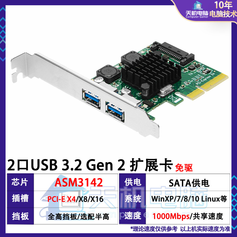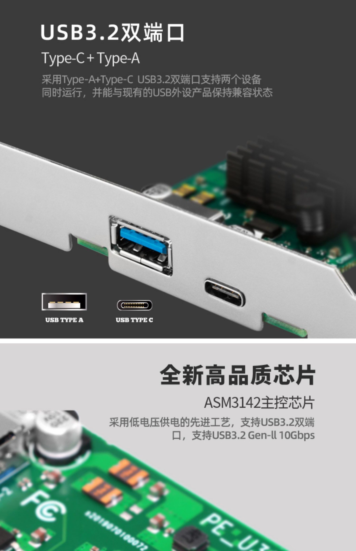 PCIE-USB3.2 확장 카드 2-포트 Tpye-C 어댑터 데스크톱 USB 인터페이스 확장 10G 기가비트스토어 가기