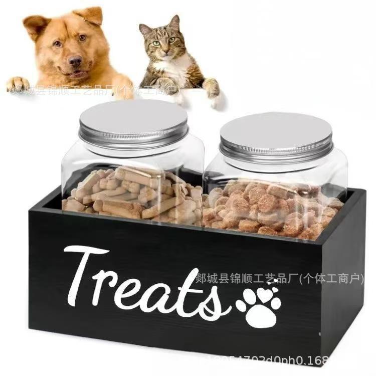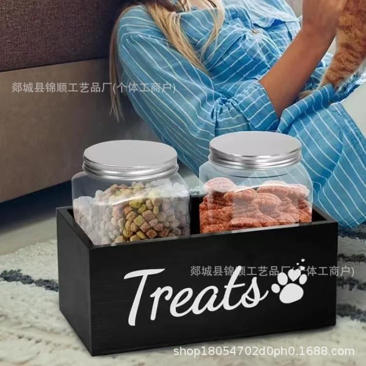 나무 저장 개 식품 저장 상자 애완 동물 용품 간식 동결 건조 저장 상자 데스크탑 고양이와 개 간식 저장 상자