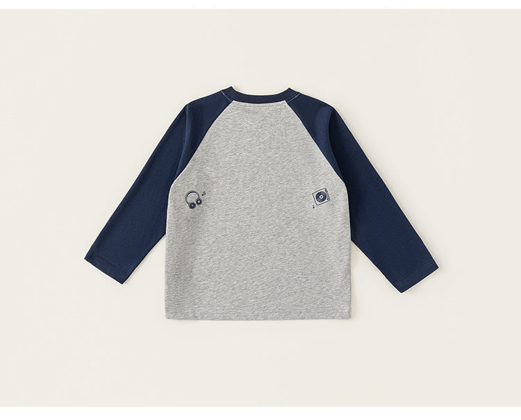 Yibao 아동복 라글란 슬리브 옷 2025 새로운 가을 의류 편지 인쇄 대비 색상 캐주얼 긴팔 소년 티셔츠