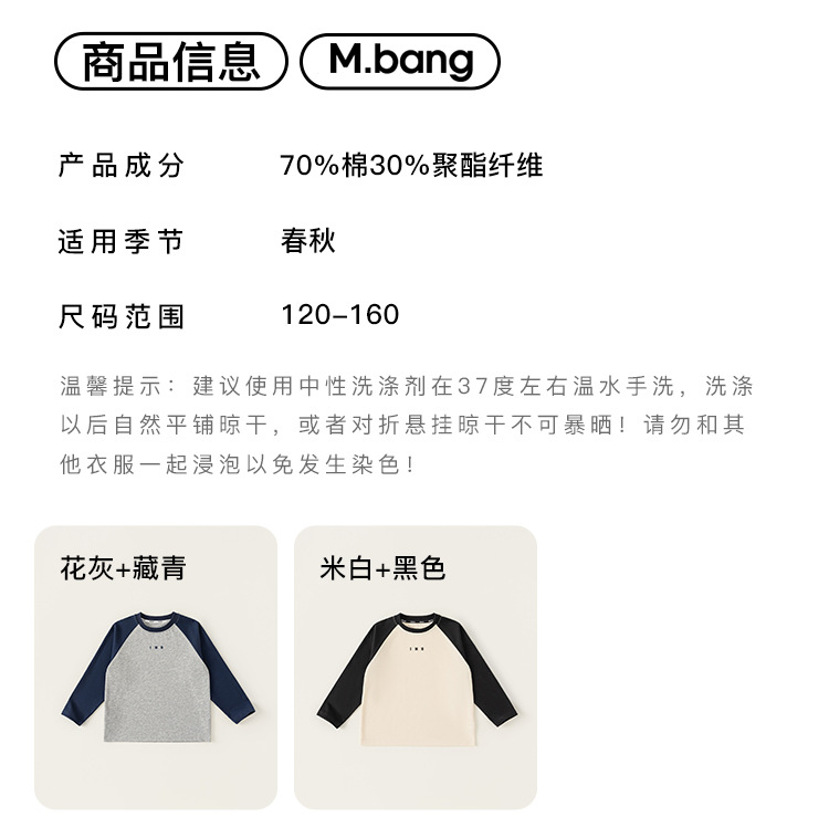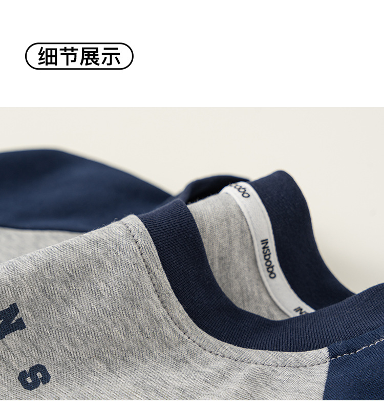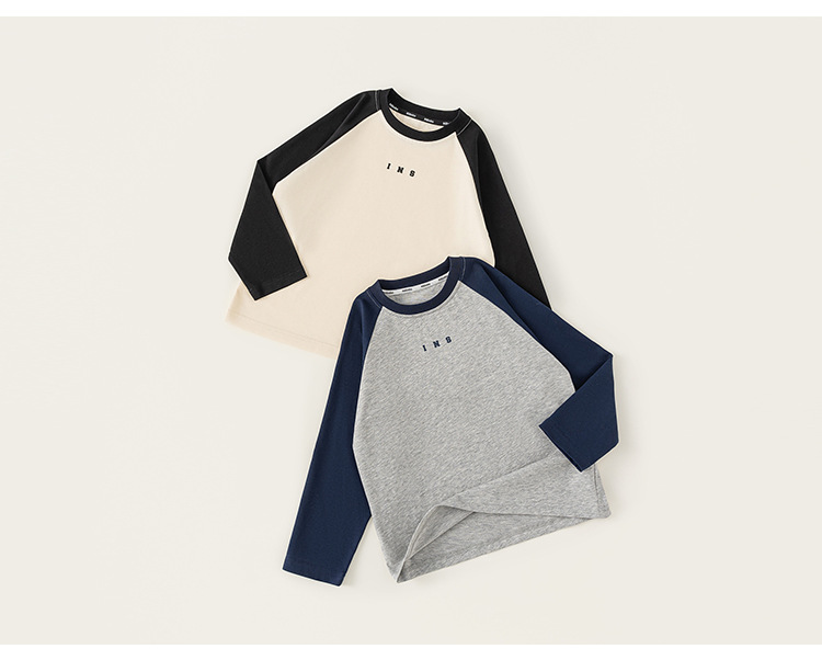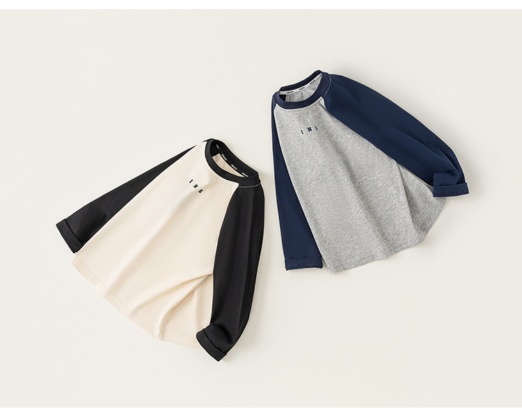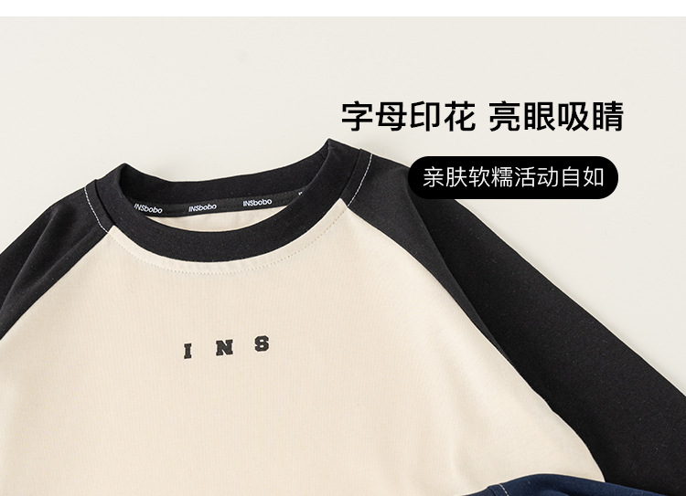 Yibao 아동복 라글란 슬리브 옷 2025 새로운 가을 의류 편지 인쇄 대비 색상 캐주얼 긴팔 소년 티셔츠스토어 가기
