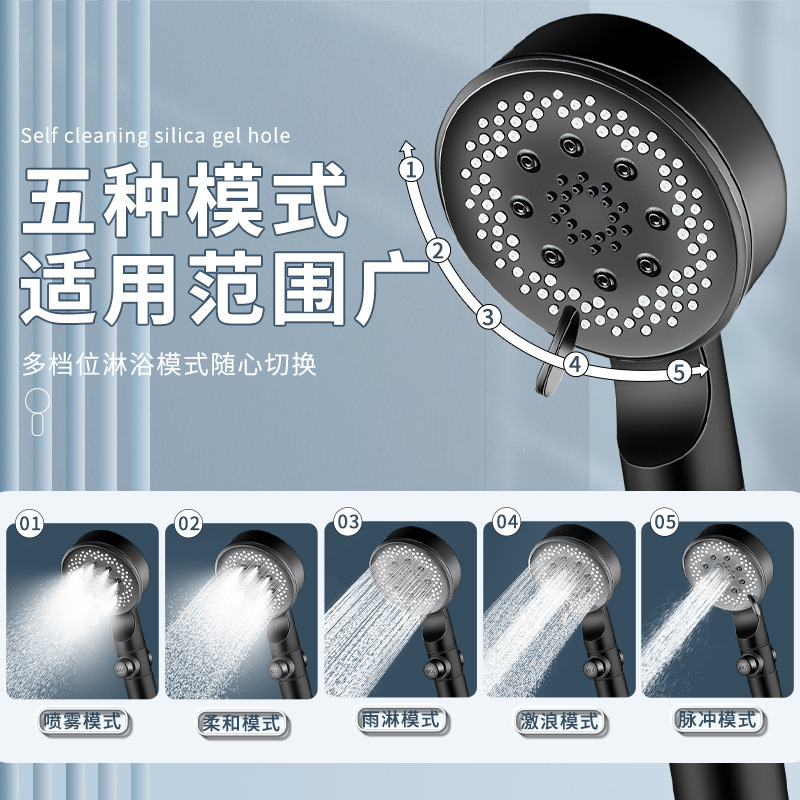 샤워 샤워 헤드 블랙 6 단 가압 1 버튼 워터 스톱 가정용 목욕 핸드 헬드 샤워 헤드 제로 구매