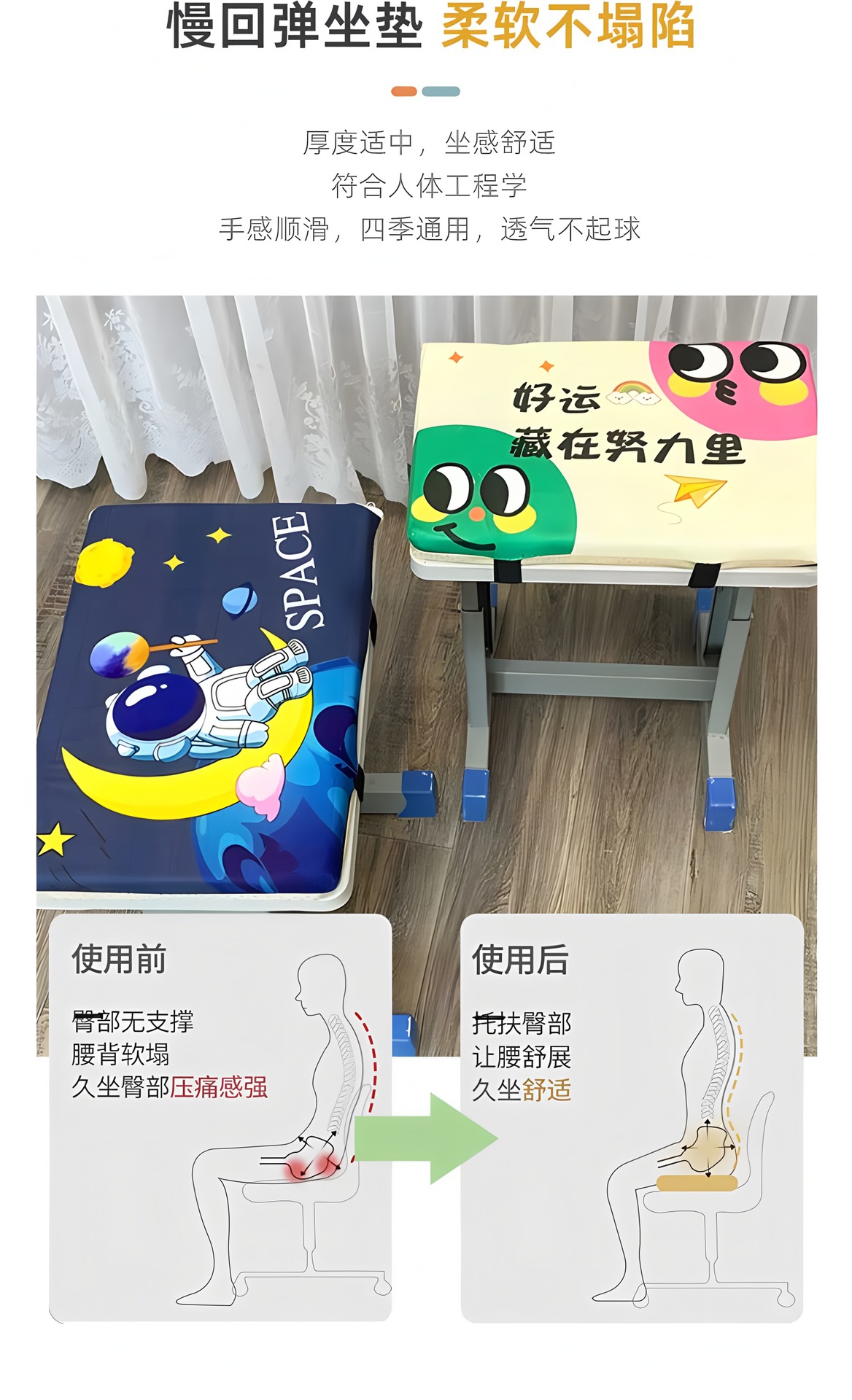 학생용 좌석 쿠션 직사각형 엉덩이 쿠션 의자 쿠션 교실 장시간 앉기용 귀여운 고등학교 의자 쿠션 만화 학교용스토어 가기