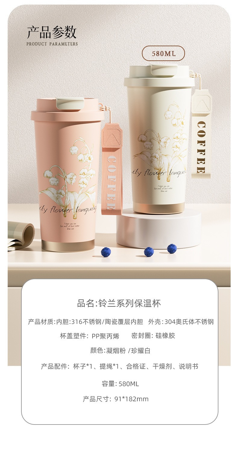 백합 백합 여성용 고가 휴대용 대용량 316 스틸 세라믹 라이너 더블 마시는 커피 밀짚 컵