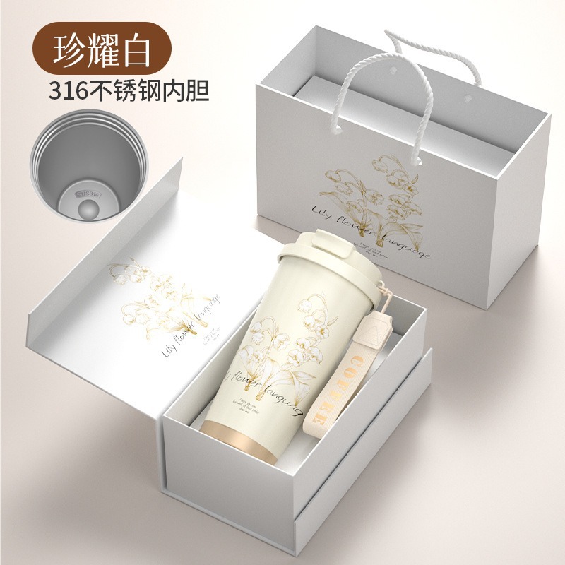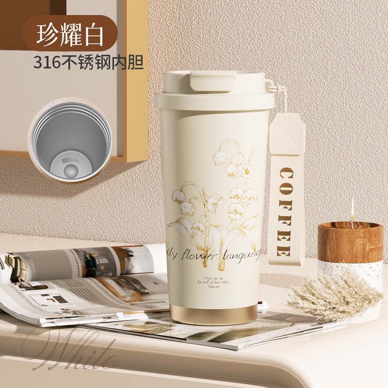 백합 백합 여성용 고가 휴대용 대용량 316 스틸 세라믹 라이너 더블 마시는 커피 밀짚 컵스토어 가기