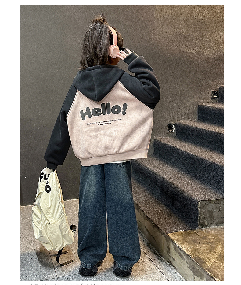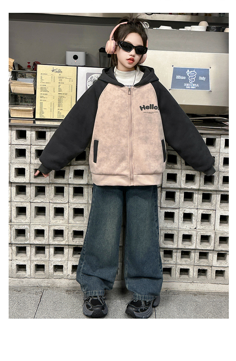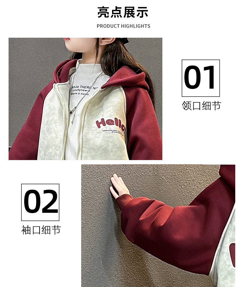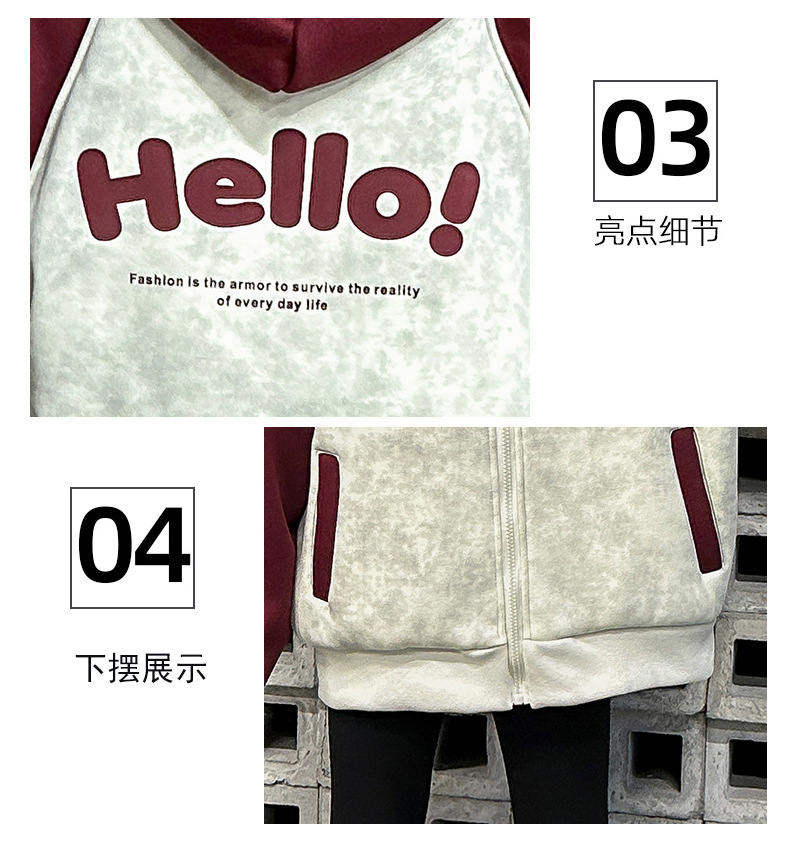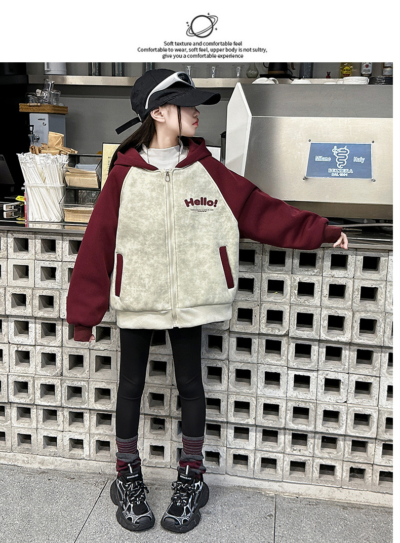 여자 겨울 벨벳 재킷 2024 새로운 한국 스타일 서양식 컬러 매칭 유행 두꺼운 후드 야구 세트